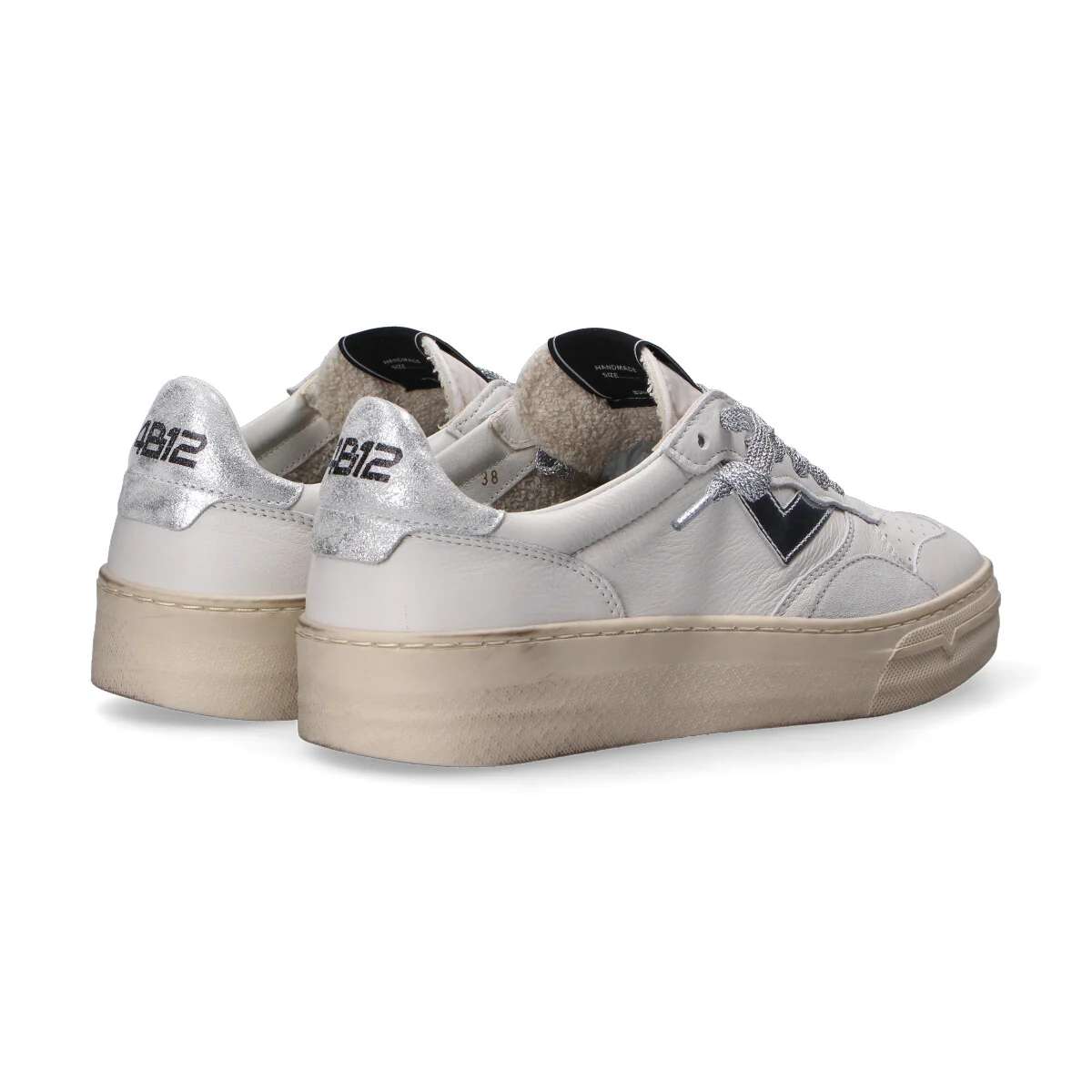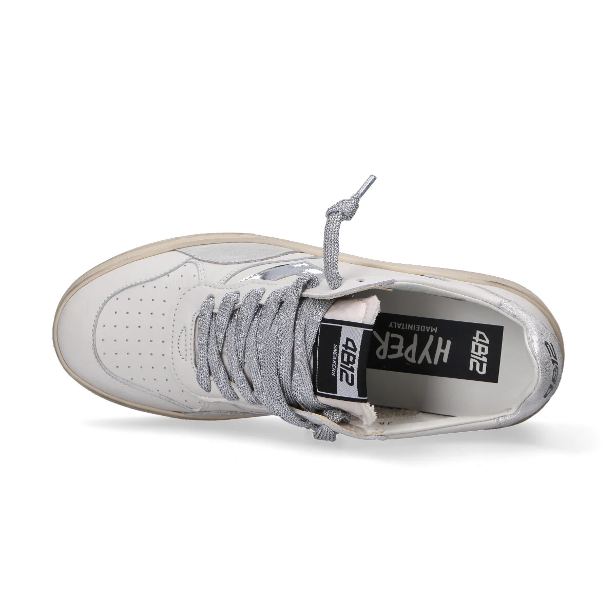 4B12 sneakers modello Hyper Tomaia in pelle e camoscio Dettagli in camoscio laminato Fodera in spugna Logo a specchio Suola in gomma effetto used Altezza suola 3 cm Plantare estraibile lacci laminati Made in Italy Si consiglia di pulire delicatamente la scarpa con un panno morbido Calzata regolare Materiale: PELLE-CAMOSCIO Colore: BIANCO Codice Articolo: HYPER-D101