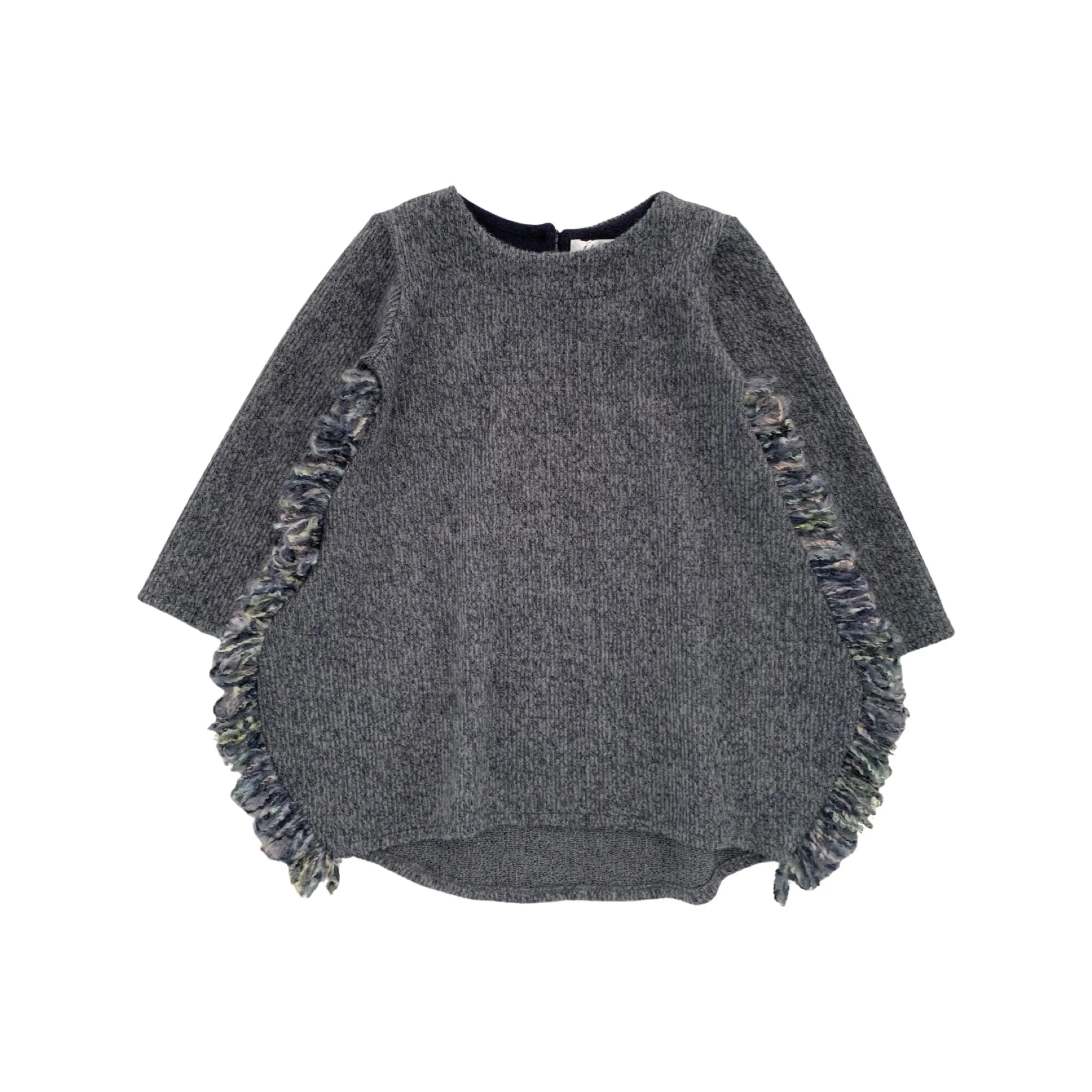 Abito in soffice maglina, Modello a uovo, Girocollo, Maniche lunghe, Dettaglio frangia