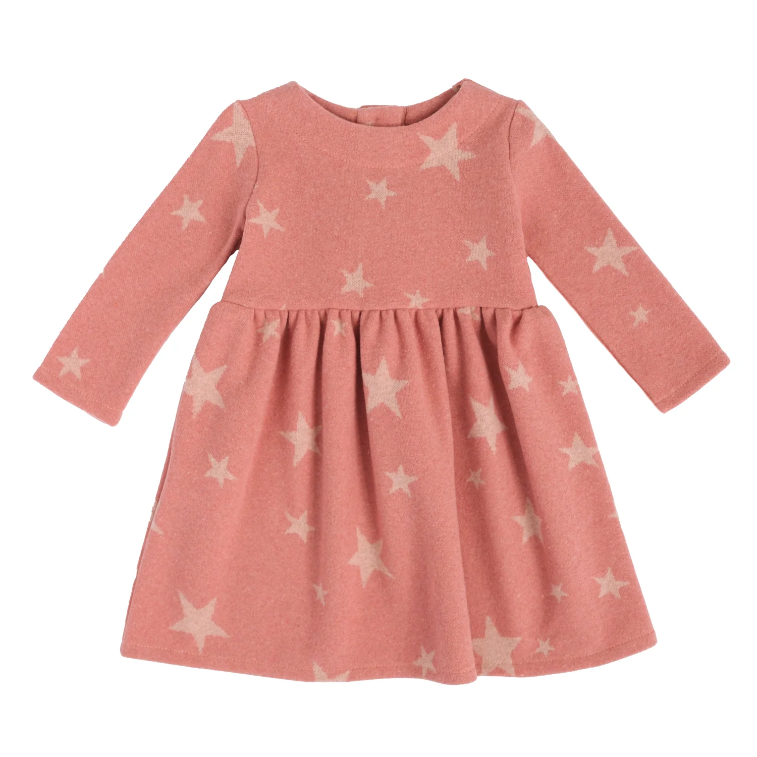 Abito in punto milano in fantasia stelle, Manica lunga, Girocollo, Chiusura sul retro con bottoncini in madreperla