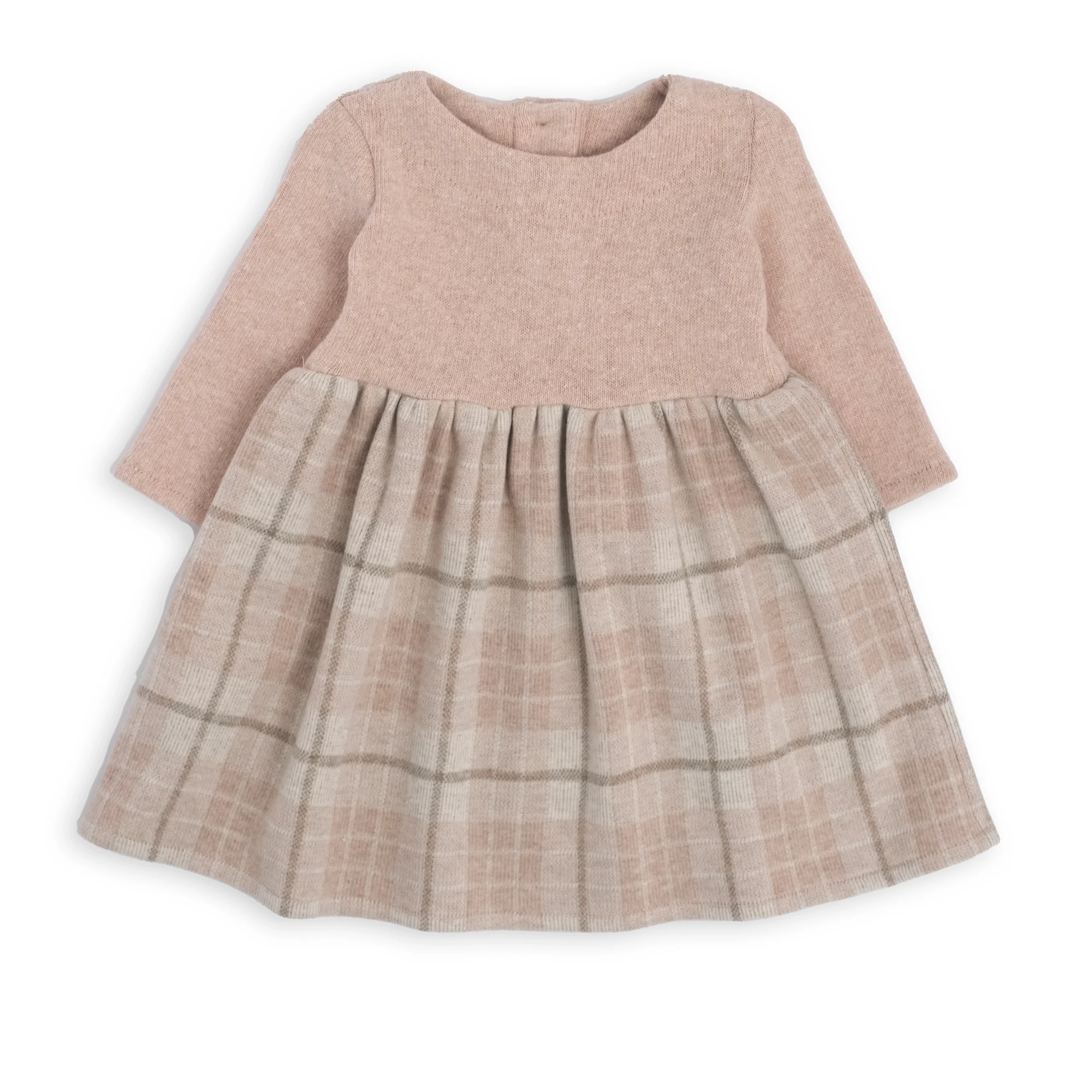 Abito in caldo cotone, Girocollo, Gonna fantasia scozzese, Chiusura sul retro con bottoncino in madreperla