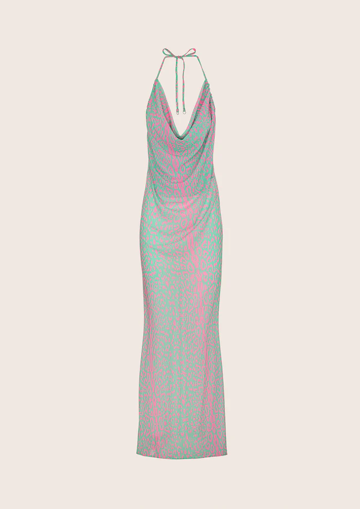 L’abito Effek lungo presenta un design affascinante, con un profondo scollo sulla schiena che aggiunge una nota di sensualità e femminilità. L’allacciatura dietro il collo conferisce un tocco elegante, creando una silhouette raffinata e seducente. Questi dettagli sono pensati per mettere in risalto la tua grazia naturale e la bellezza del tuo corpo.