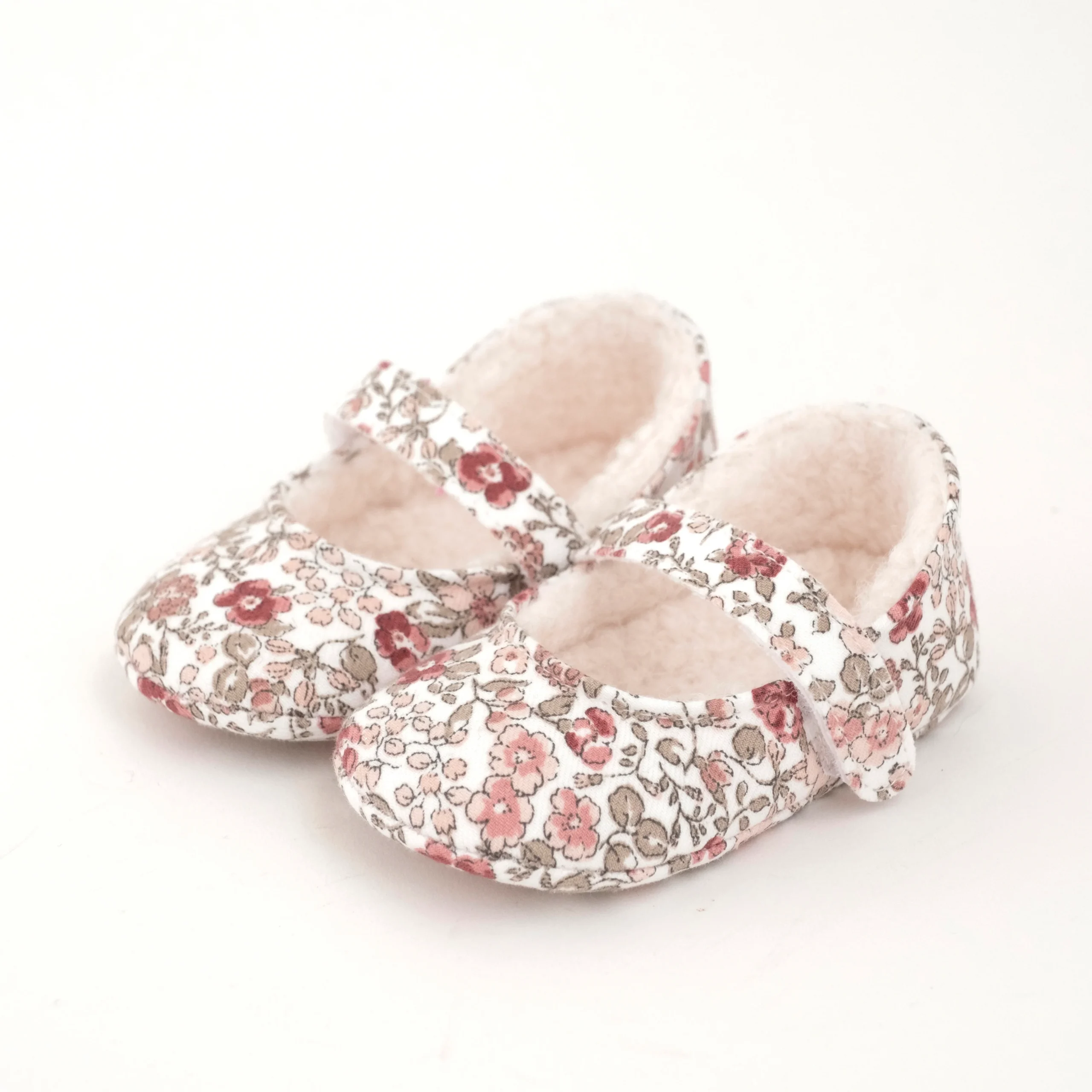 Ballerina primi passi tessuto fiorellino con fodera in tessuto orsetto.