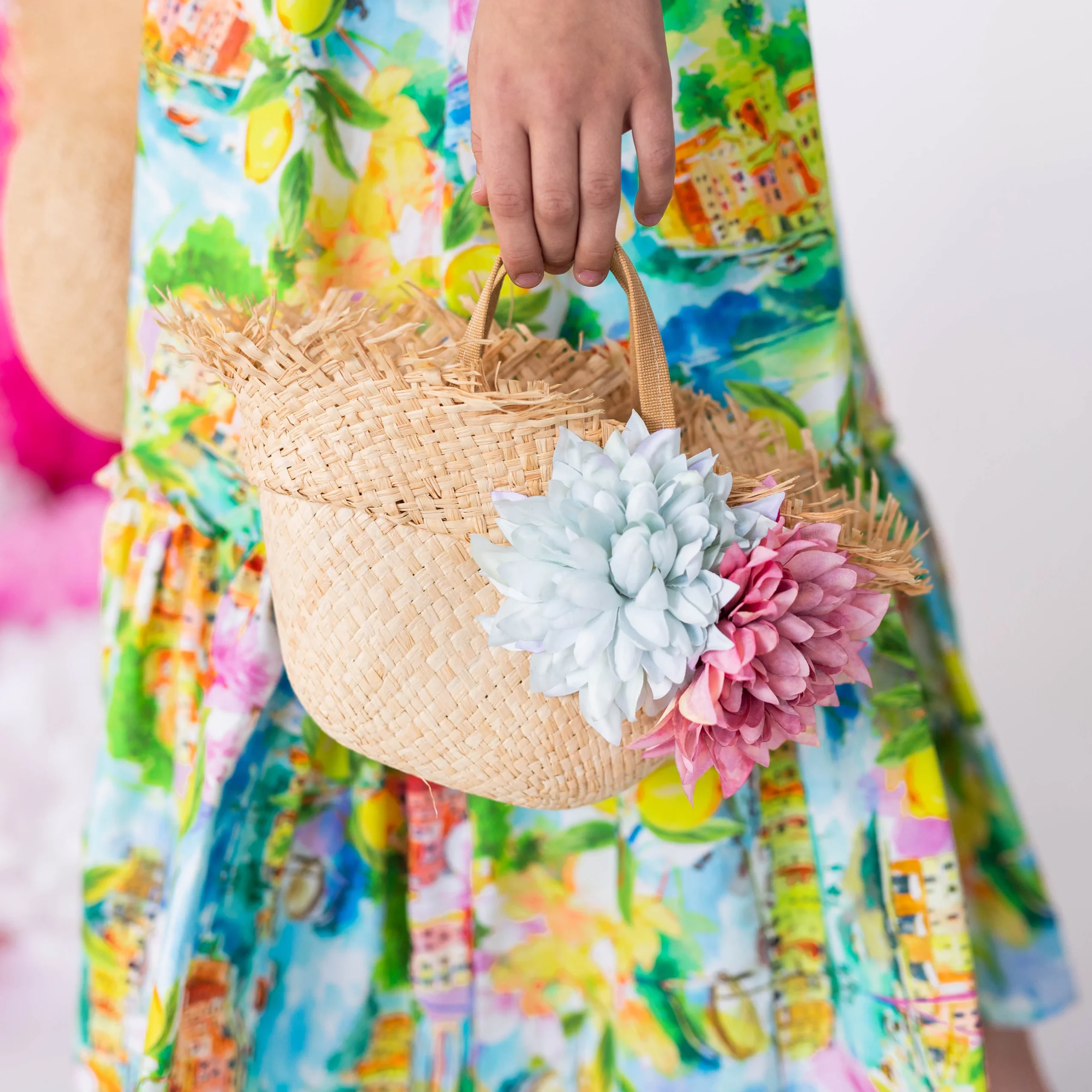 BORSA CLOCHE IN RAFFIA CON FIORI