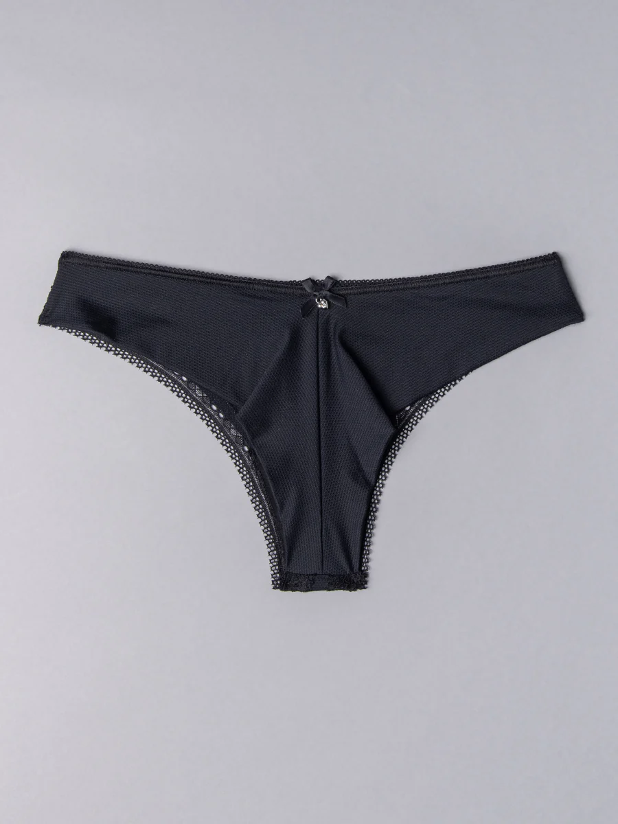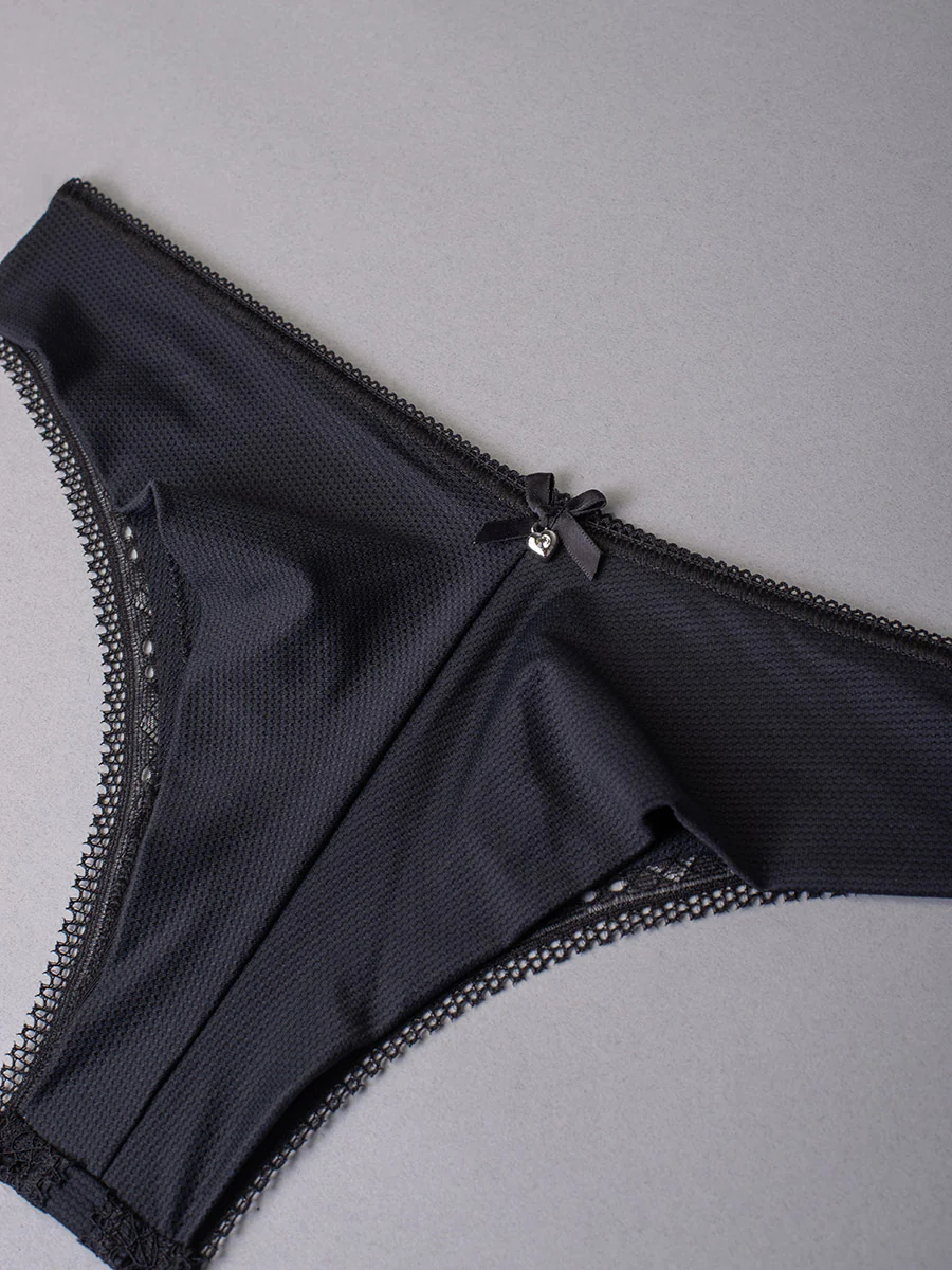 La brasiliana è impreziosita da un fiocco in raso sul retro con piccolo punto luce a forma di cuore, che la rende un vero gioiello di lingerie capace di esaltare la femminilità con raffinatezza.