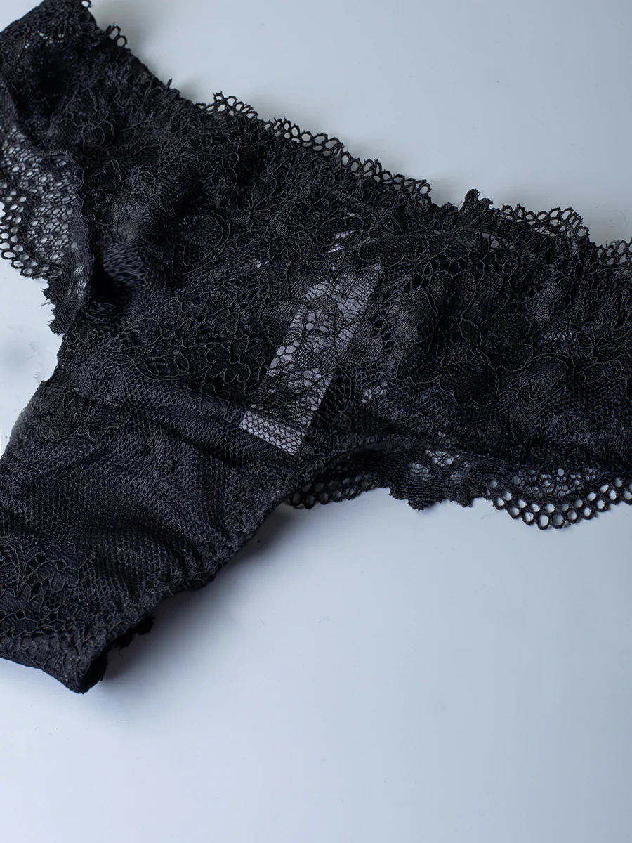 Sensuale brasiliana realizzata in raffinato pizzo stretch. Modello con bordi smerlati e cucitura centrale sul retro che assicura ottima vestibilità.