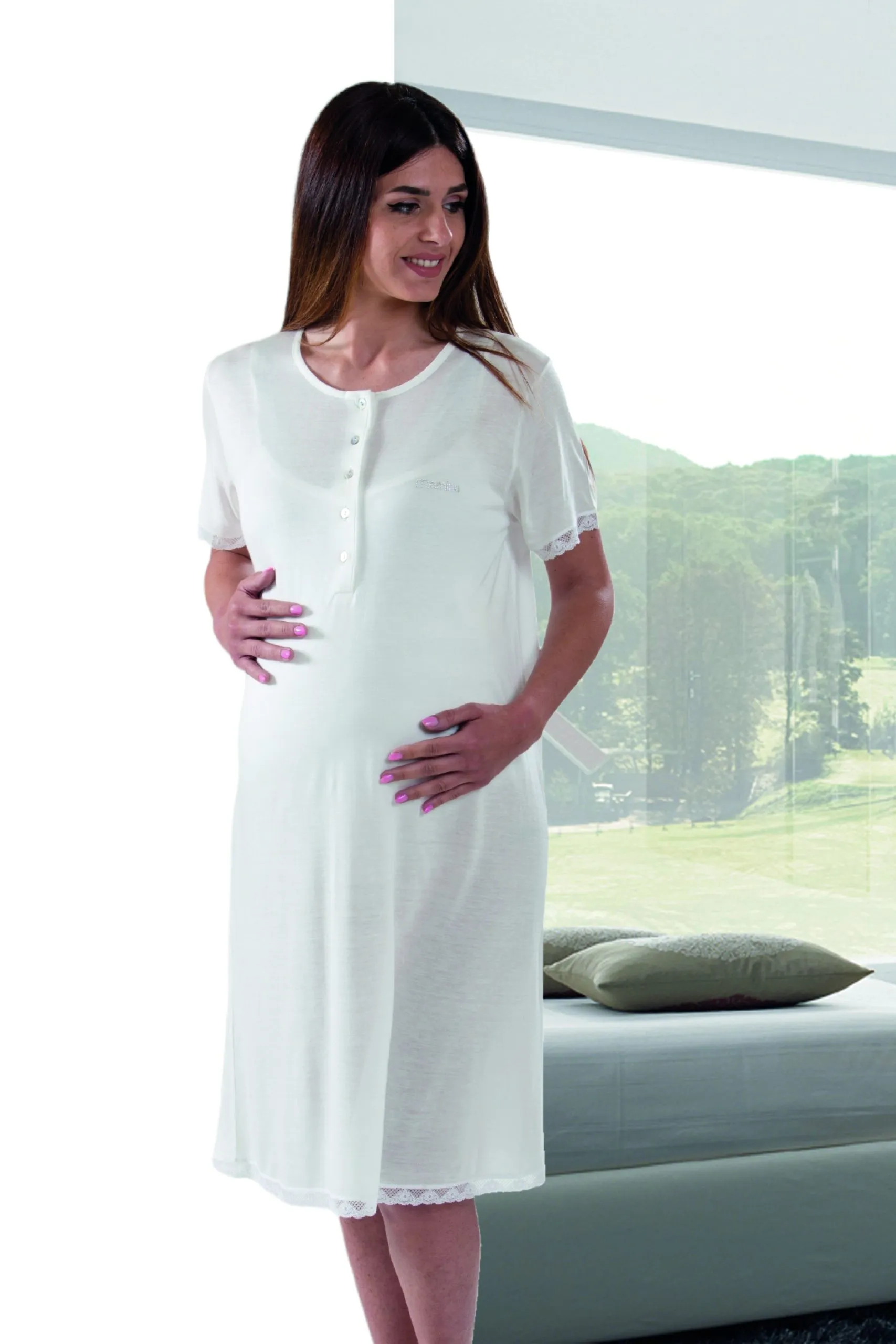 Camicia da notte mezza manica serafino con balza Mamina – Z9276