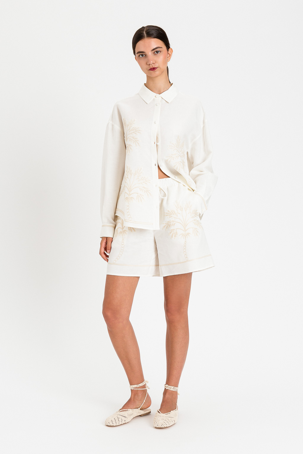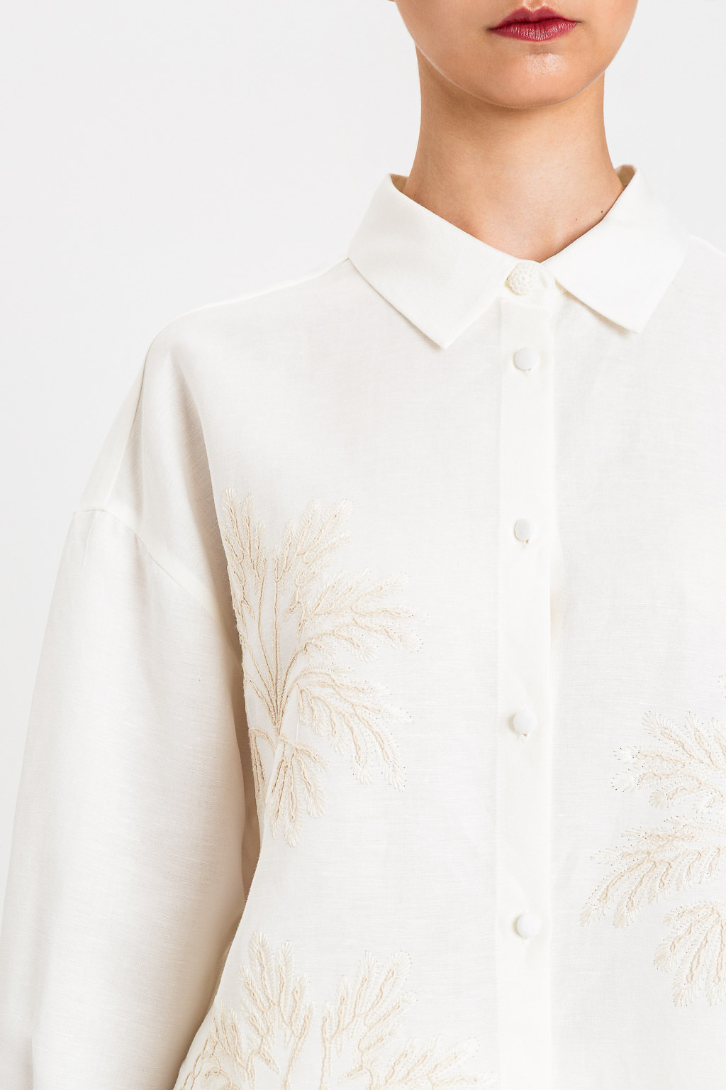 Camicia in Misto Lino con Ricamo Cornely e Punto À Jour – Vaniglia – Twinset