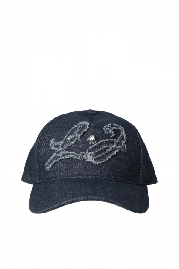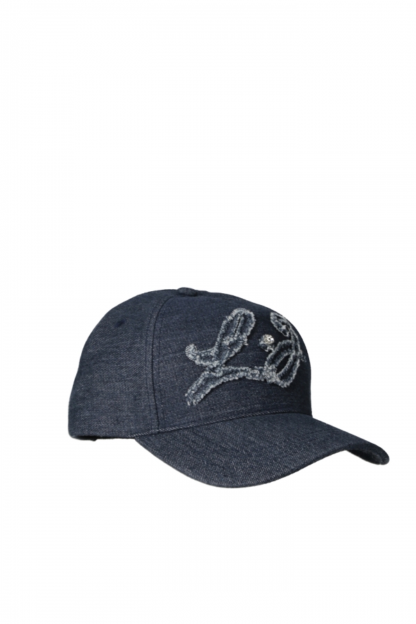 Cappello Baseball in Denim con Logo Sfrangiato e Strass – Blu – Liu Jo