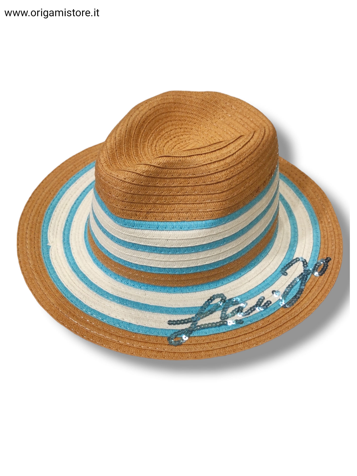 Cappello in Paglia a Righe con Logo in Paillettes – Naturale/Blu – Liu Jo