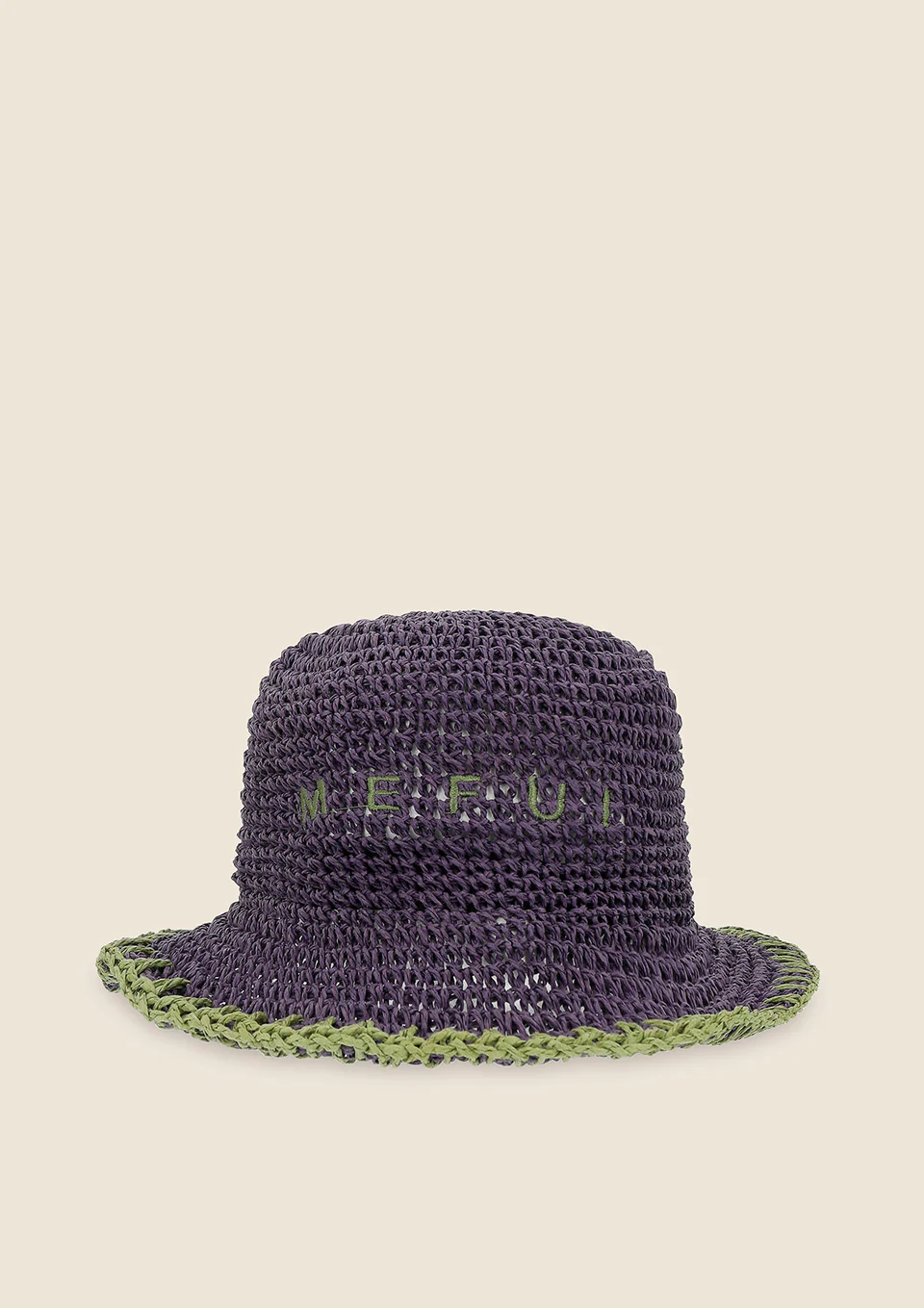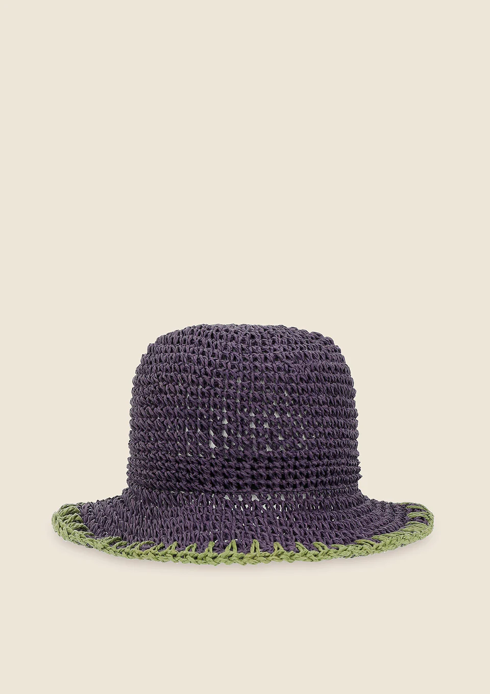 CAPPELLO MARE ME FUI IN RAFIA NEL COLORE VIOLA CON RICAMI VERDE SALVIA