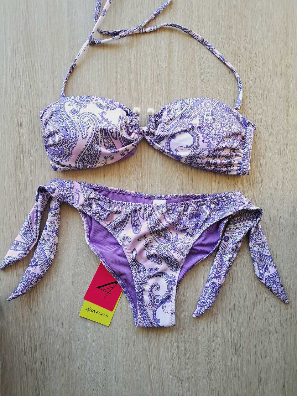Il bikini 4Giveness della collezione estate 2025 è il costume perfetto per chi cerca un look sofisticato e alla moda. Il suo design a fascia esalta il décolleté con eleganza, mentre la splendida fantasia sui toni del lilla aggiunge un tocco romantico e fresco, perfetto per le giornate al mare o in piscina.
