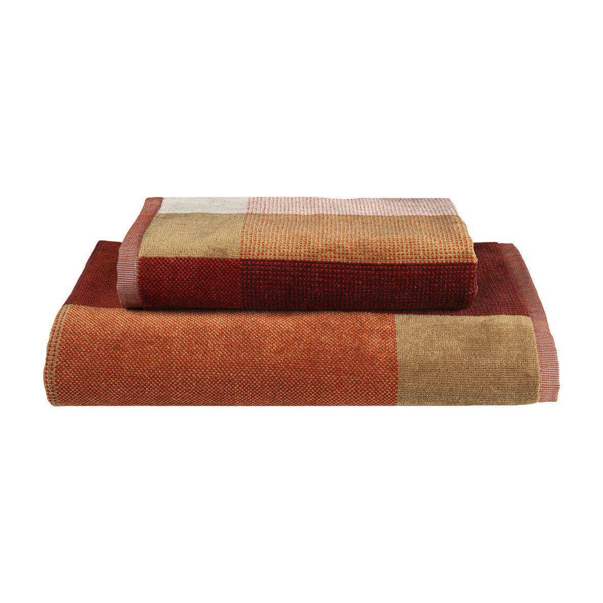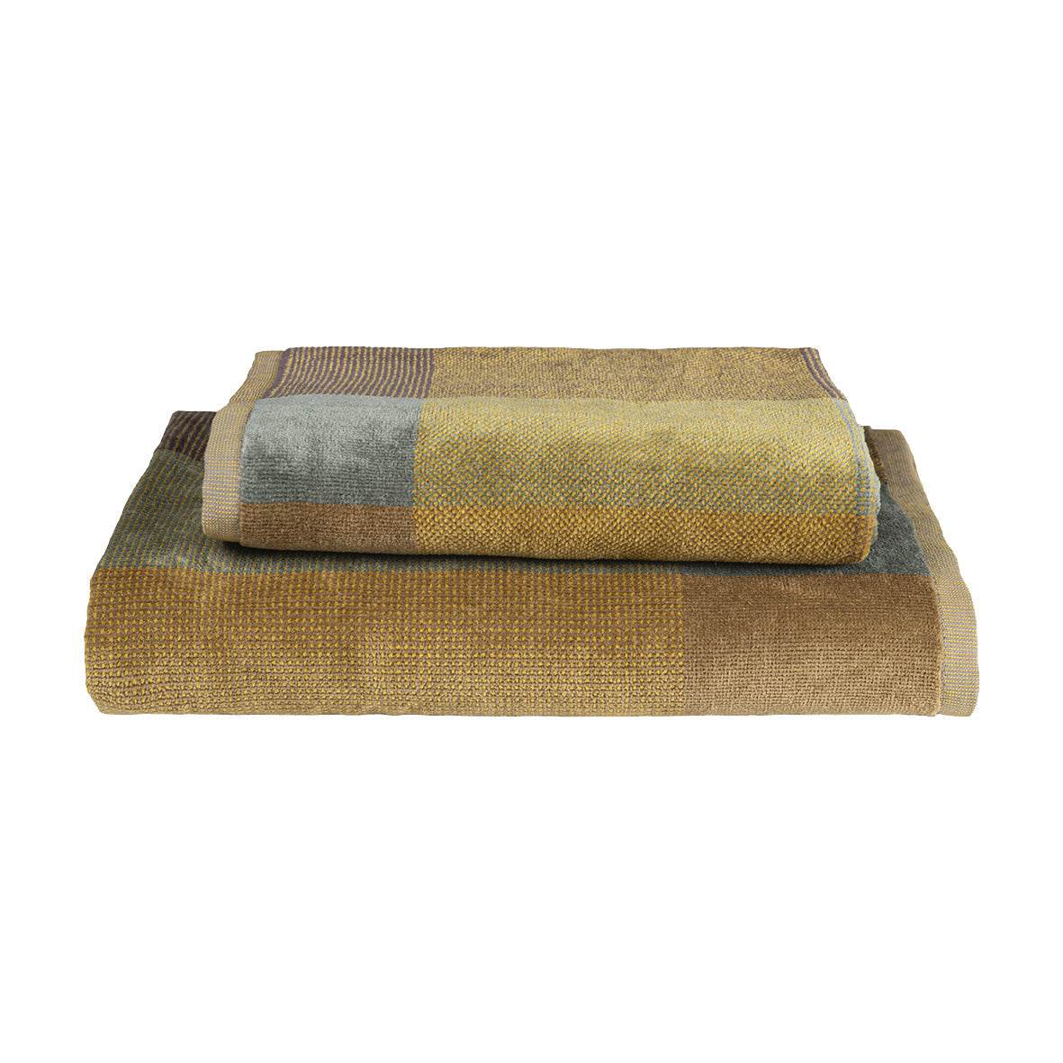 Set spugna 1+1 viso+ospite in spugna di cotone con esterno in morbido velour in fantasia geometrica con eleganti sfumature di colore