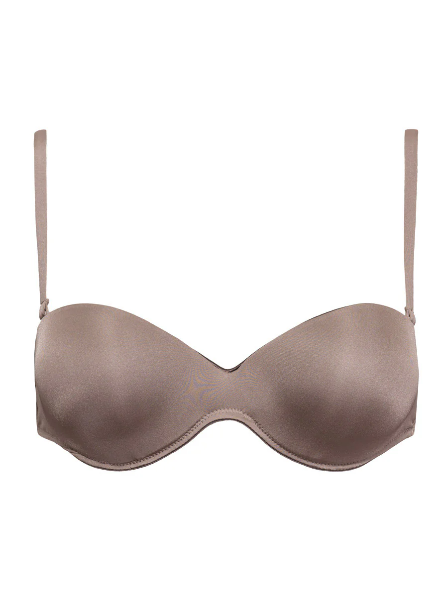 Fascia push-up con ferretto e coppe graduate ad effetto schiena nuda. Modello realizzato in morbidissima microfibra semilucida con eleganti profili sulle coppe, spalline ricoperte intercambiabili e cuciture invisibili.