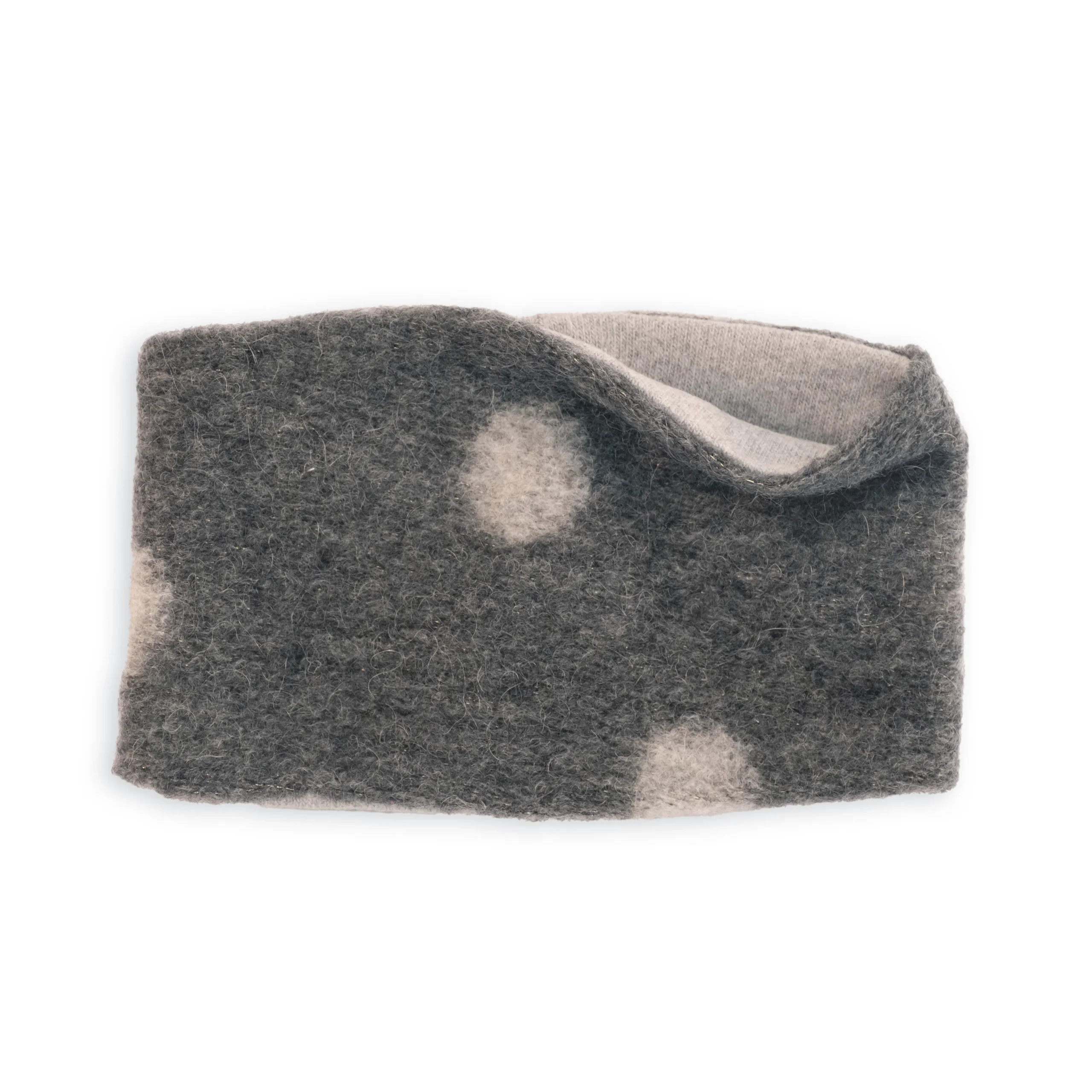 Fascia in tessuto fantasia a pois effetto mohair. Foderata in morbido caldo cotone