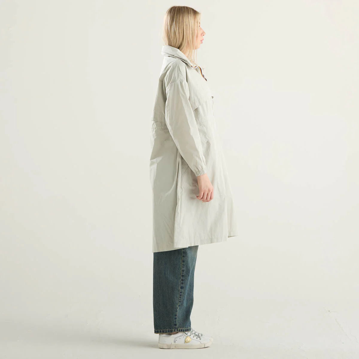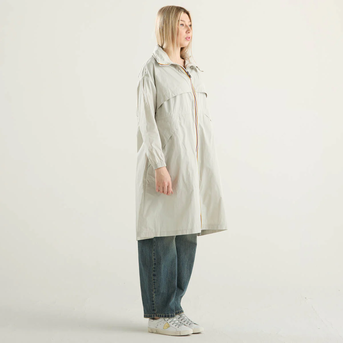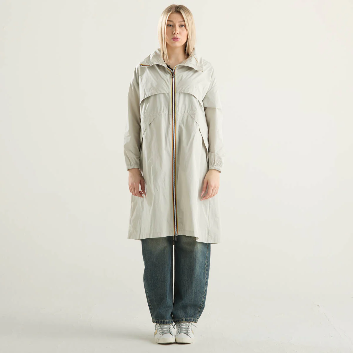K-Way impermeabile lungo in tessuto beige chiaro