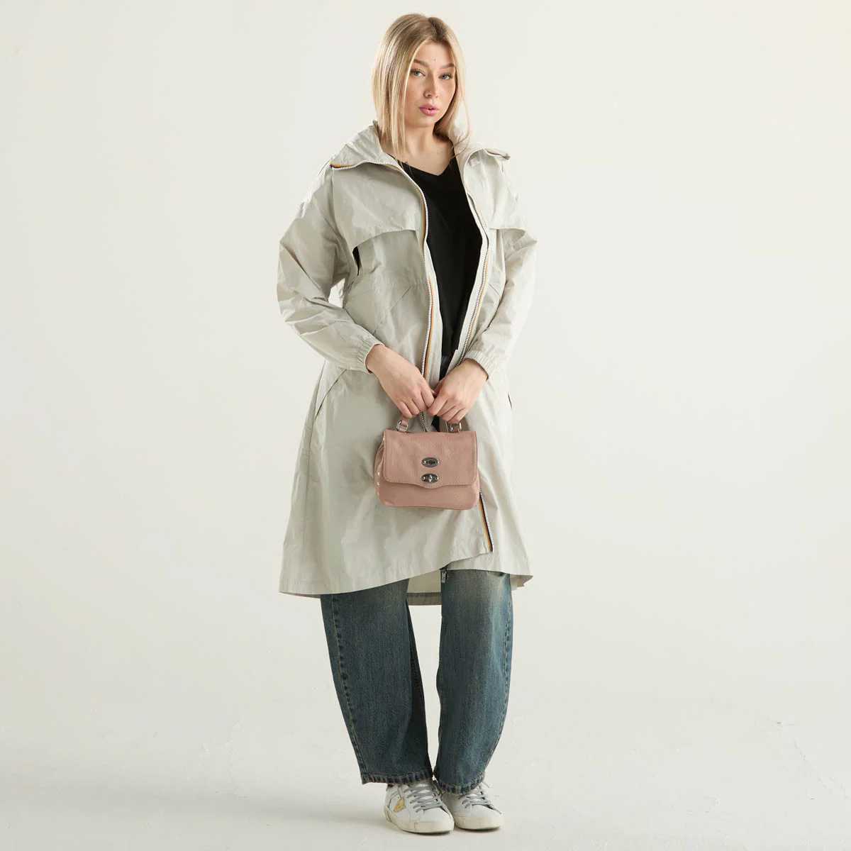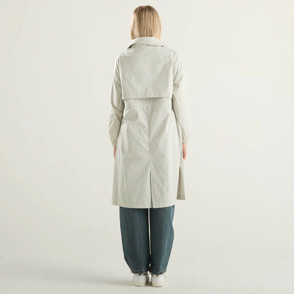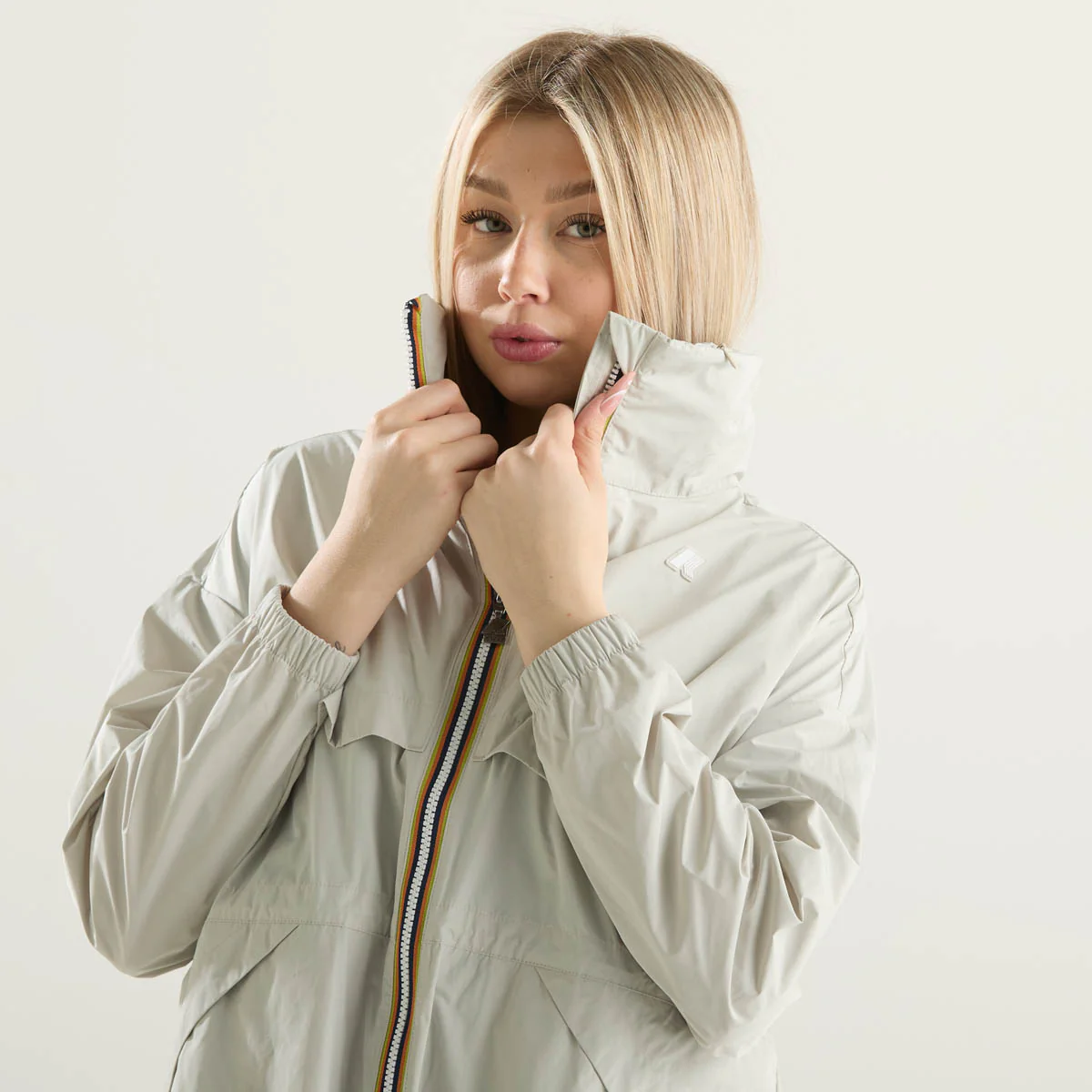 K-Way impermeabile lungo in tessuto beige chiaro