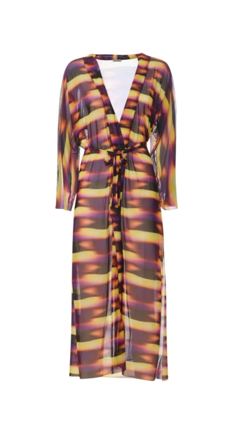 Il kimono copricostume Matinee è progettato per offrire una vestibilità eccellente e un comfort senza pari. La lunghezza del kimono, che arriva fino ai piedi, offre una copertura completa pur mantenendo un aspetto leggero e arioso. La cinturina in vita permette di stringere o allentare il kimono a seconda delle proprie preferenze, garantendo sempre una silhouette elegante e definita. Le maniche ampie e il taglio morbido assicurano una libertà di movimento ottimale, rendendo questo capo perfetto per essere indossato in diverse situazioni, dalla spiaggia al bar sulla costa.