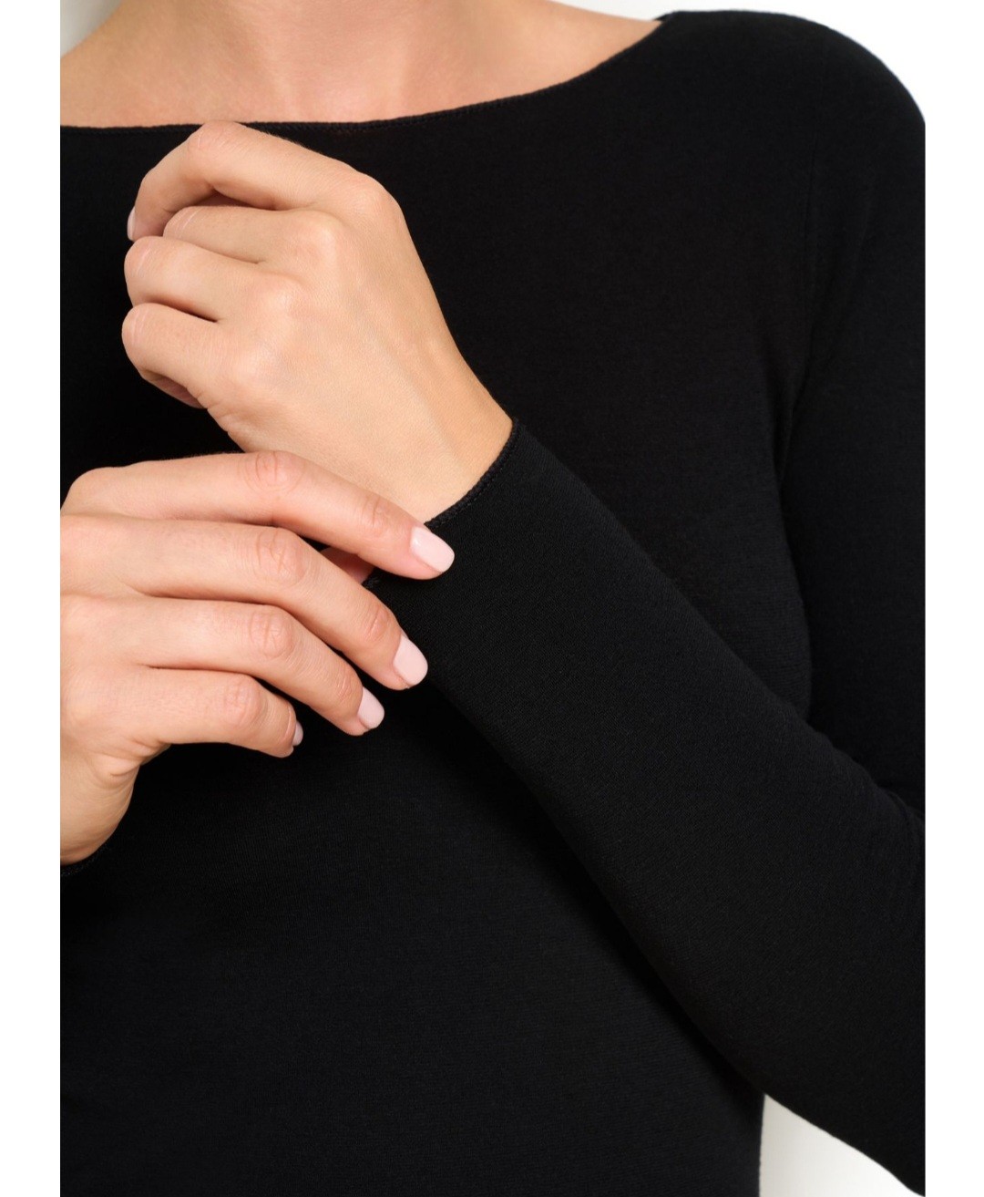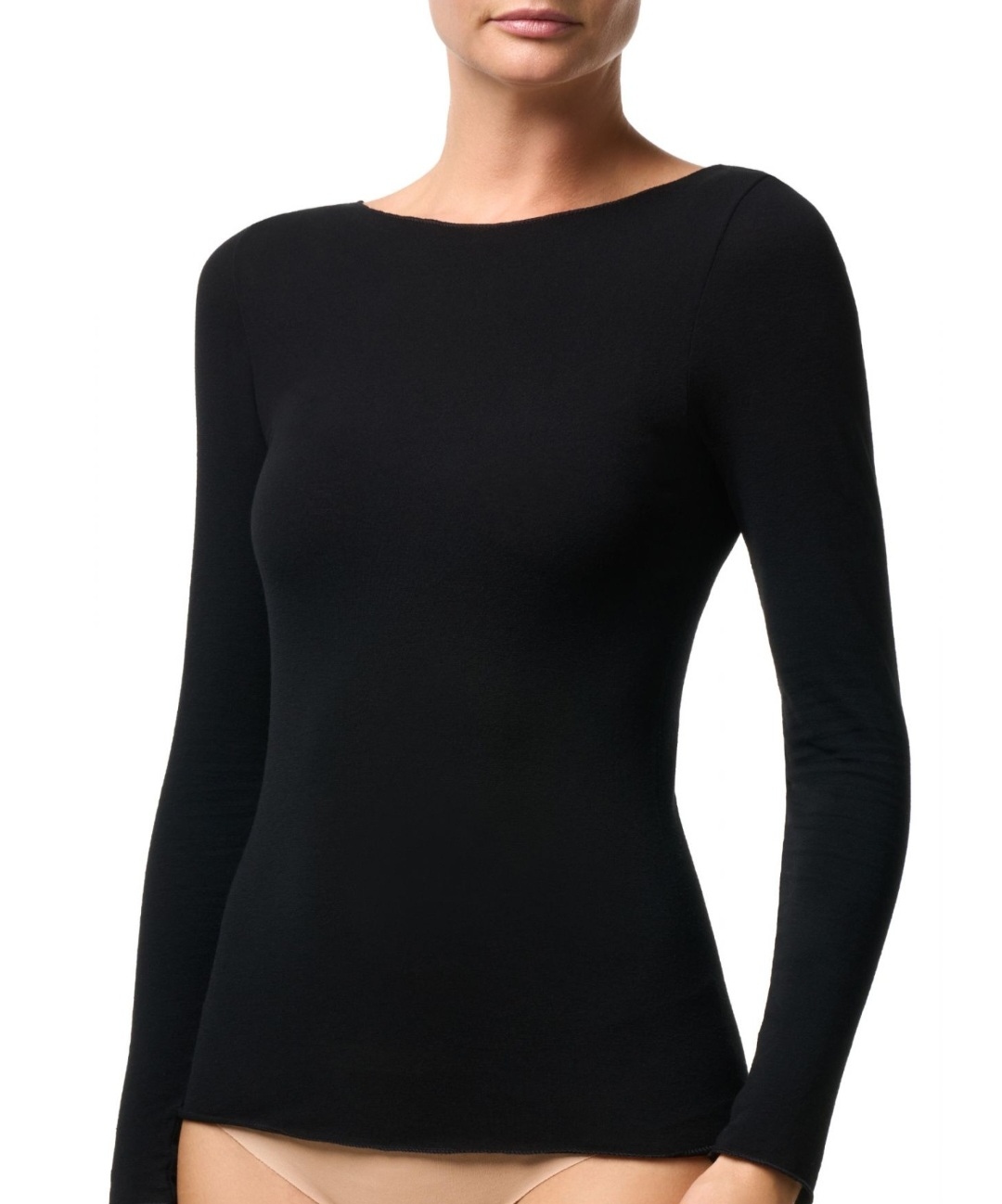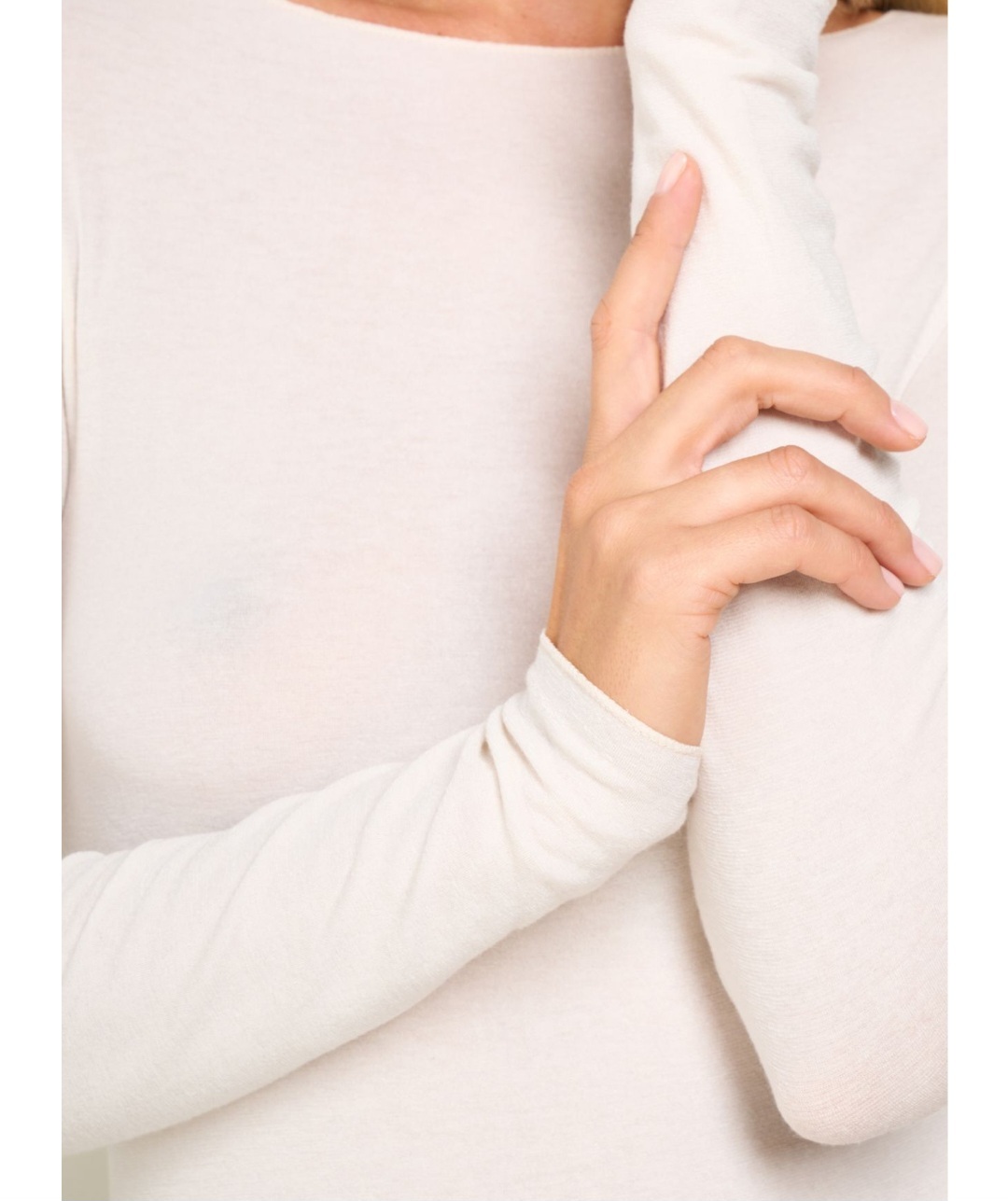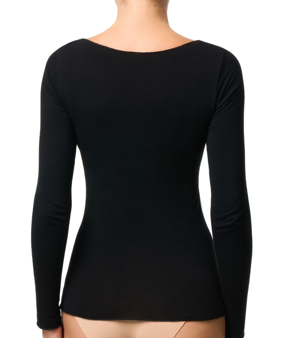 La particolarità di questa maglia risiede nel suo collo a barchetta, che aggiunge un tocco di raffinatezza al capo, data dalla sua struttura elegante. Il design senza cuciture, oltre alla vestibilità, valorizza le linee del corpo in modo discreto. La maglia ha un taglio slim fit, avvolgente ma non costrittivo, che la rende perfetto sia da indossare anche come sottogiacca.