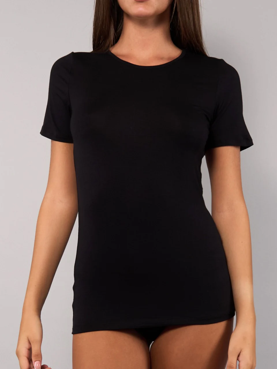 Maglia Manica Corta Girocollo in Modal – NERO – 6010
