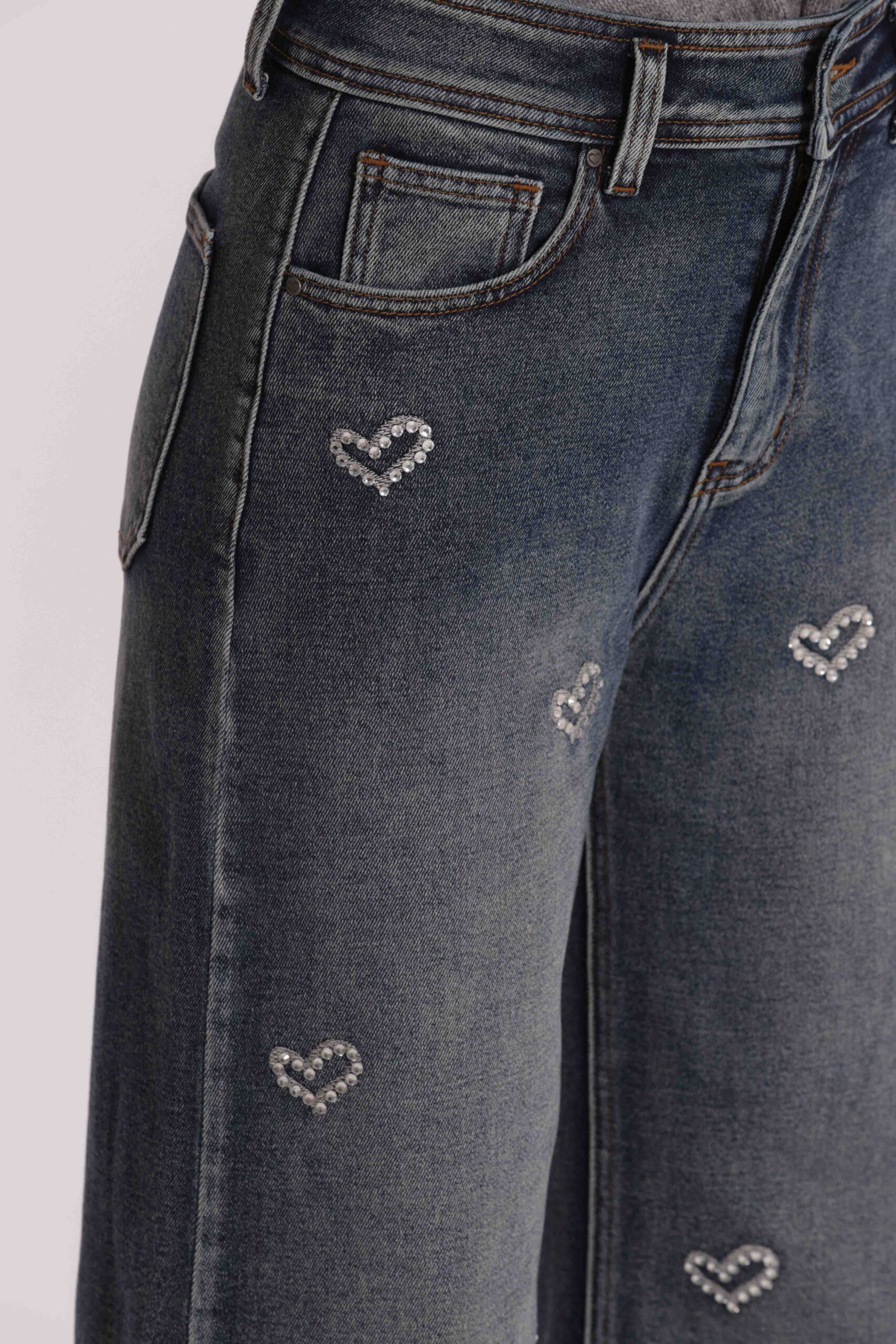 Jeans wide leg con cuori.