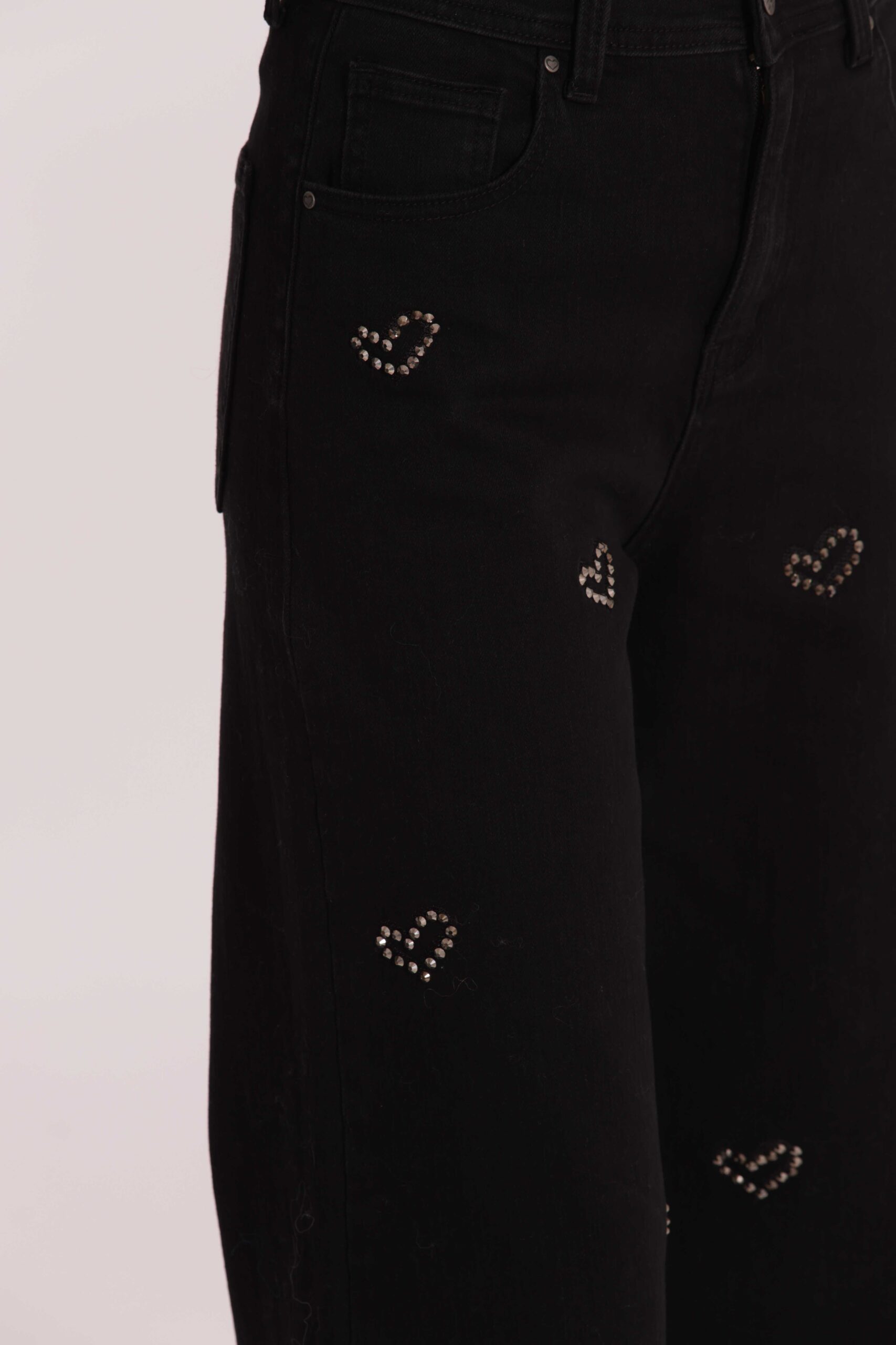 MIMÌ MUÀ Firenze ZDAN-2789 Jeans wide leg nero con cuori