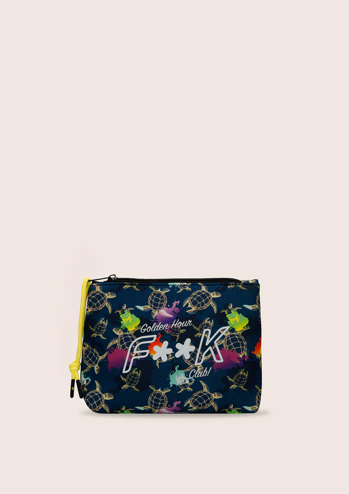 MINI POCHETTE EFFEK IN NEOPRENE BASE BLU E FANTASIA DI TARTARUGHE COLORATE
