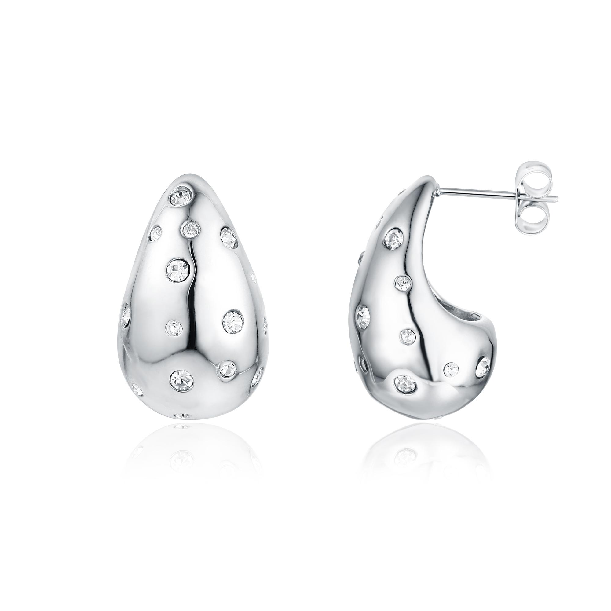 ORECCHINI #BRAND ACCIAIO INOSSIDABILE DROP CRISTALLI COLOR ACCIAIO