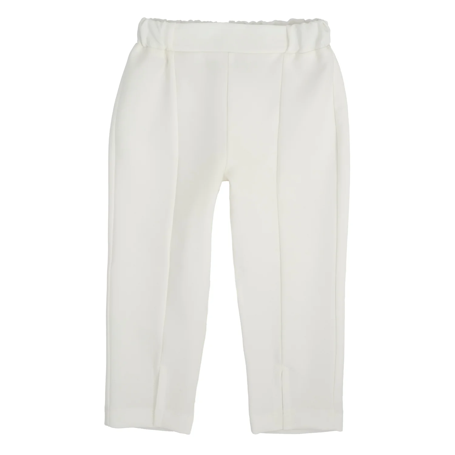 Pantalone modello a tubo in tessuto stretch elegante, Vita elasticata, Dettaglio spacchi sul fondo