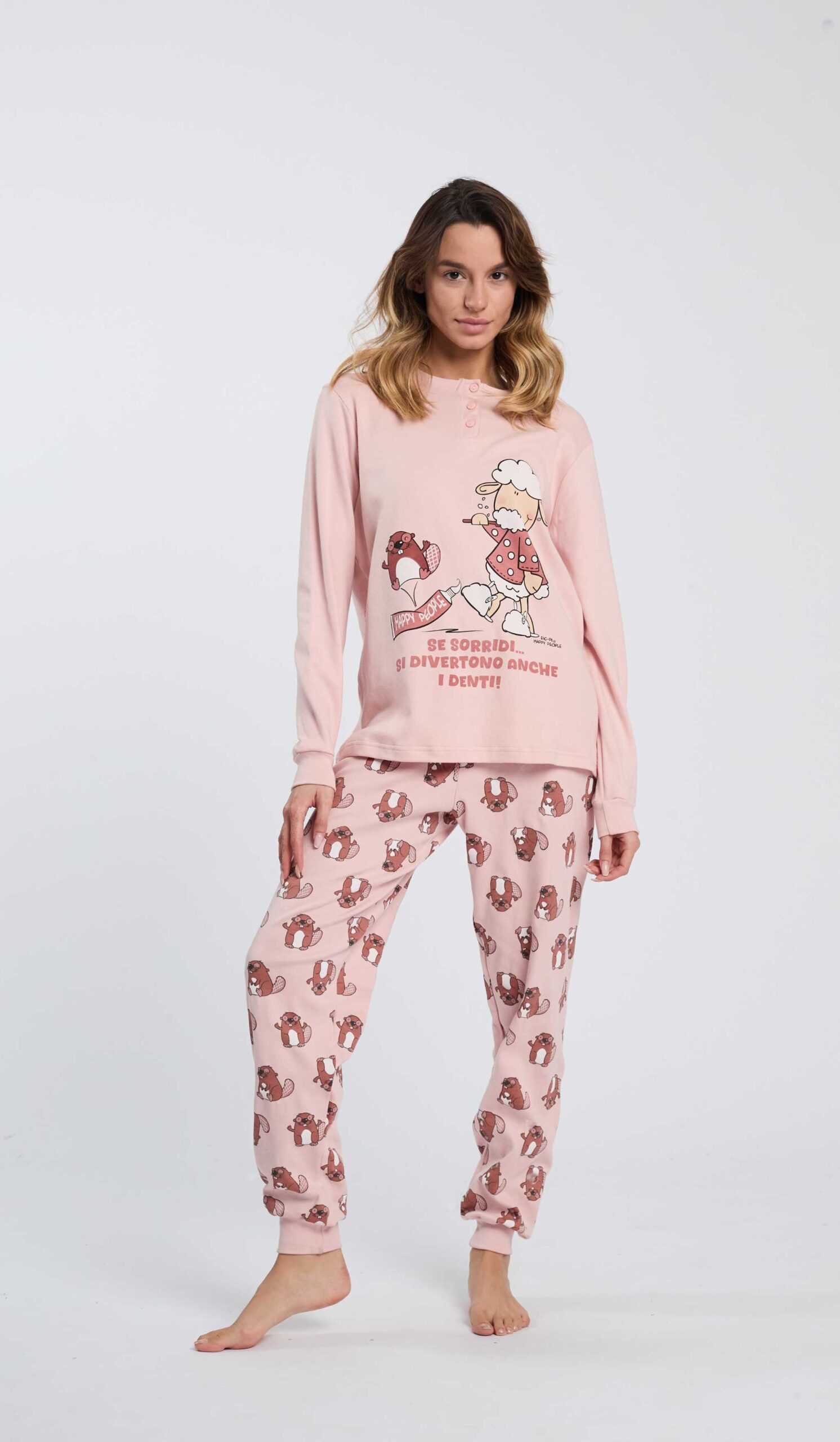 PIGIAMA DONNA HAPPY PEOPLE SERAFINO “SE SORRIDI SI DIVERTONO ANCHE I DENTI”