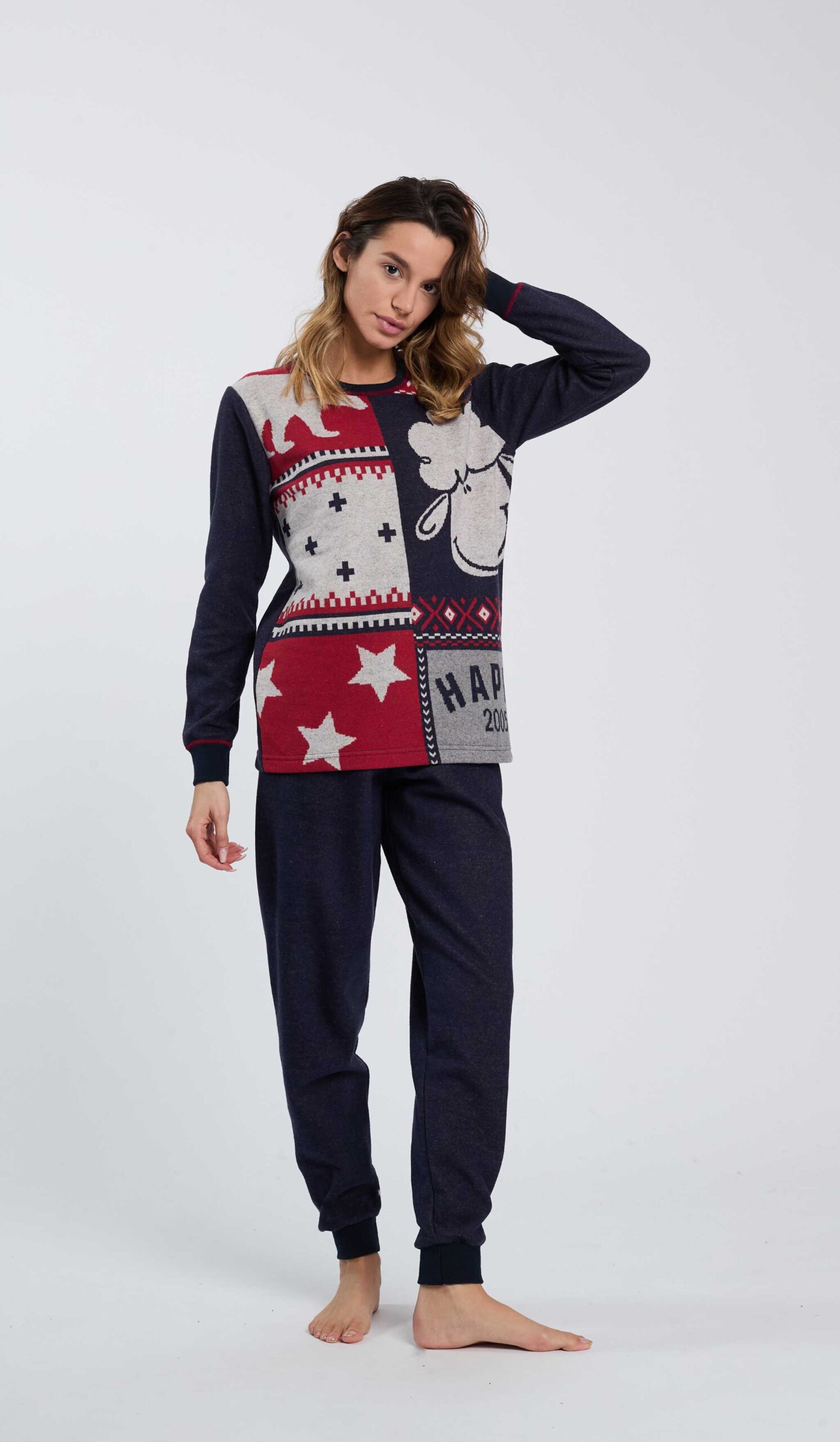 PIGIAMA DONNA PRENATALE CALDO NEL COLORI DEL BLU E ROSSO