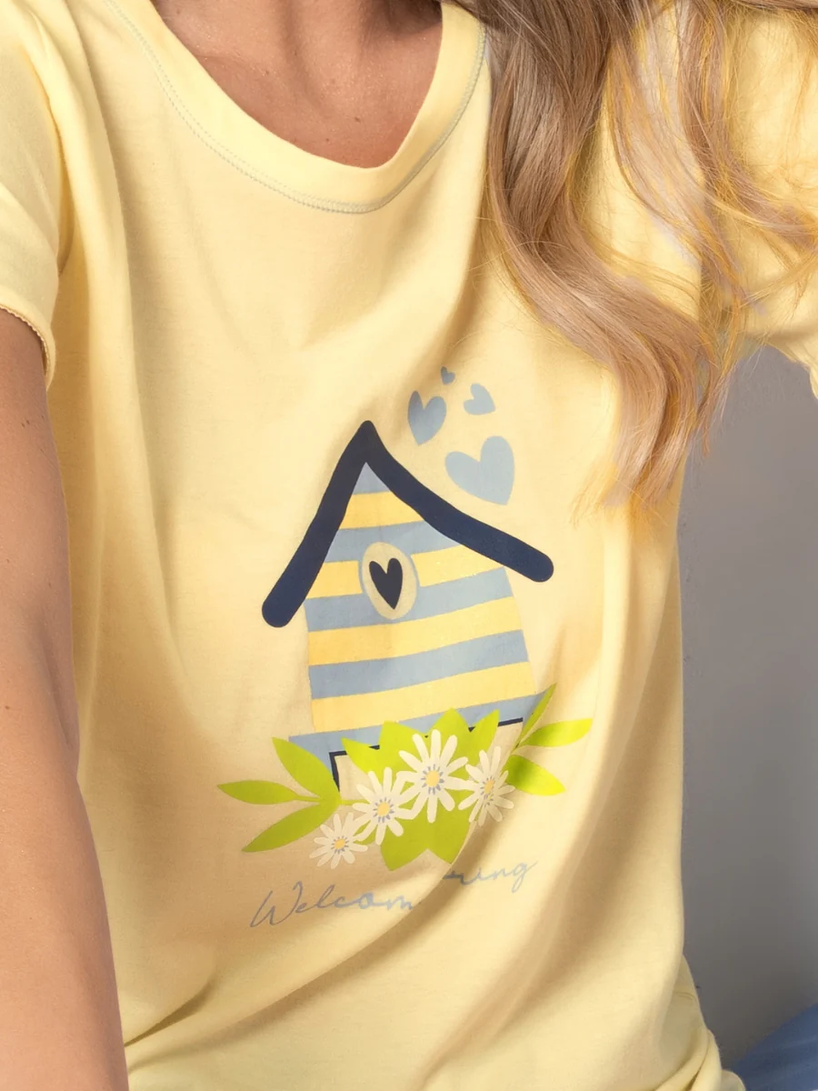 Un pigiama perfetto per chi cerca comfort naturale, freschezza e uno stile allegro e primaverile, ideale sia per il riposo che per i momenti di relax in casa.