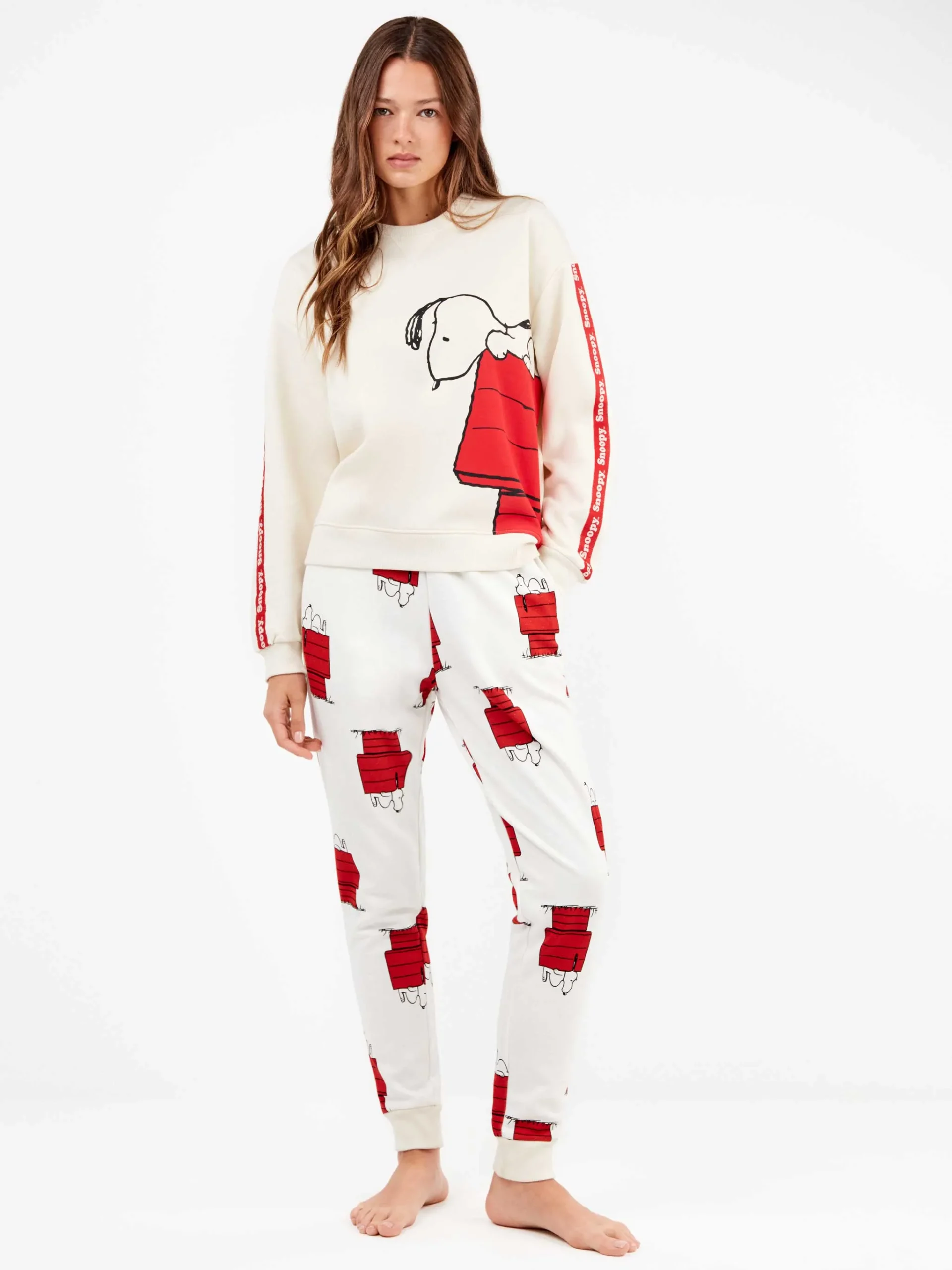 PIGIAMA/TUTA DONNA GISELA IN PILE BIANCO E ROSSO CON STAMPA SNOOPY