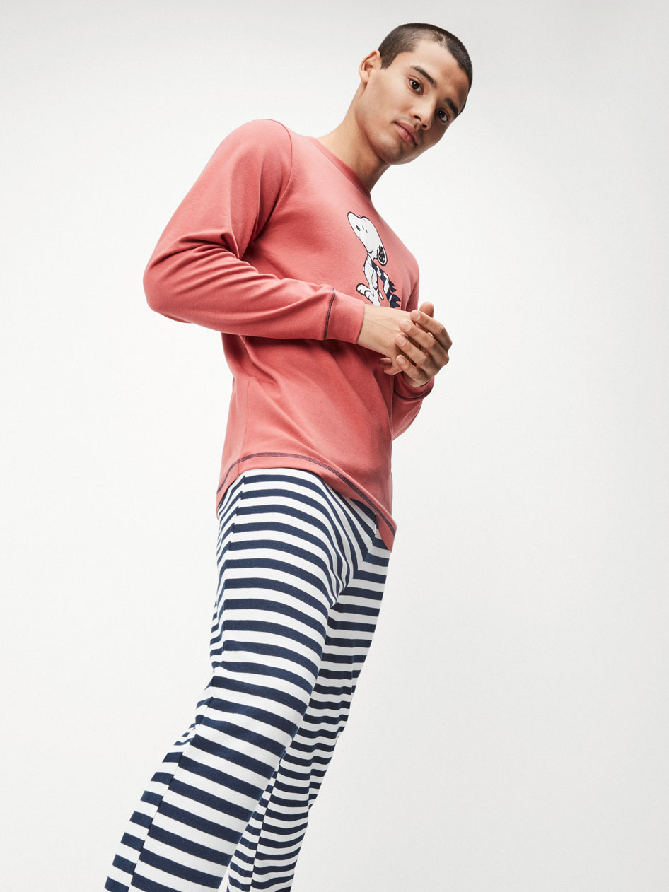 PIGIAMA UOMO GISELA GIROCOLLO IN COTONE SNOOPY MAGLIA COLOR BRUCIATO CON PANTALONI A RIGHE