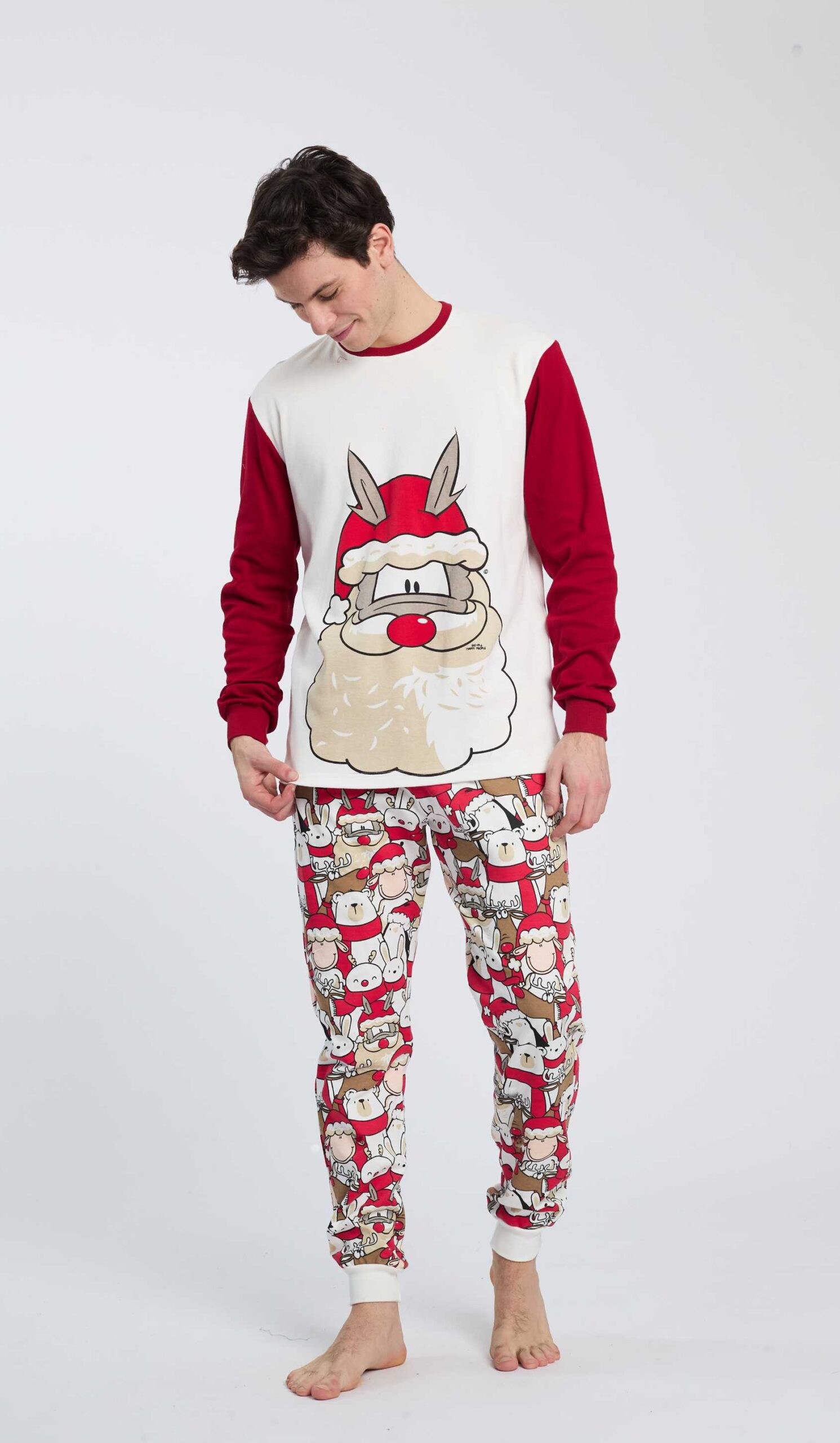 PIGIAMA UOMO HAPPY PEOPLE NATALIZIO ROSSO E BIANCO CON STAMPE NATALIZIE