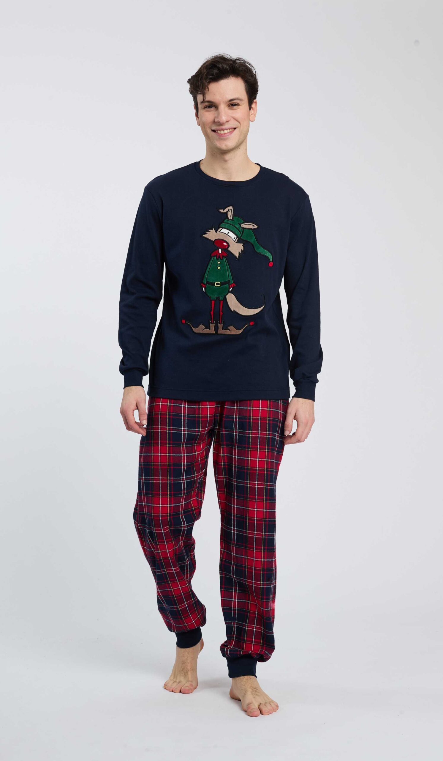 PIGIAMA UOMO HAPPY PEOPLE PRENATALE GIROCOLLO CON MAGLIA STAMPA BLU E PANTALONE A SCACCHI