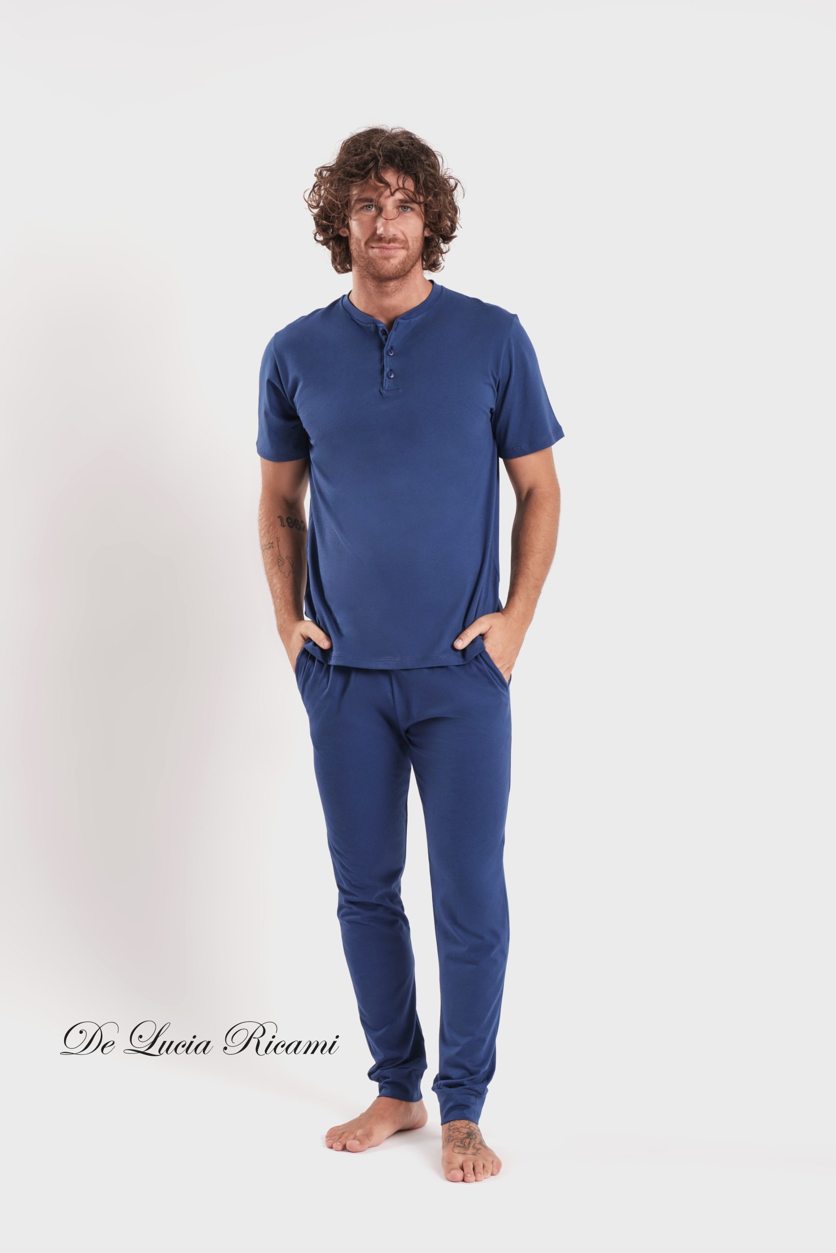 PIGIAMA UOMO MEZZA MANICA PANTALONE LUNGO IN PURO COTONE – PRODOTTO IN ITALIA
