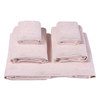 Coppia 1+1 di asciugamani in spugna di cotone con bordo e logo Blumarine in jacquard.
