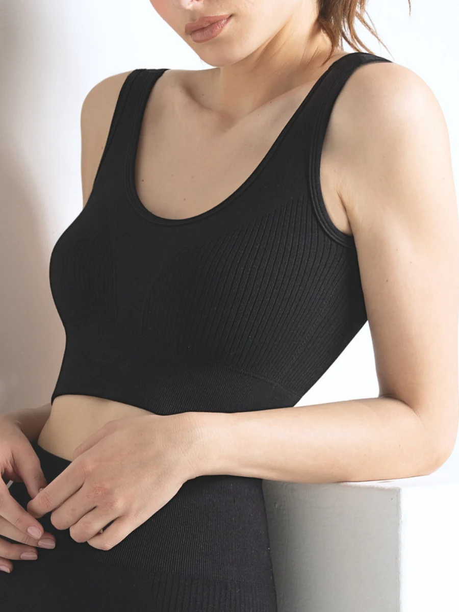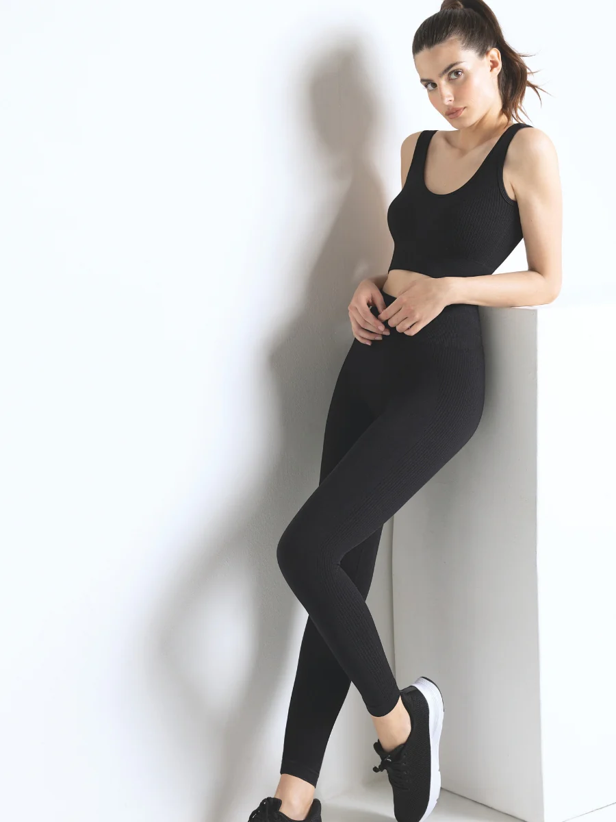 - Arricchito da dettagli a costina per estetica e supporto muscolare