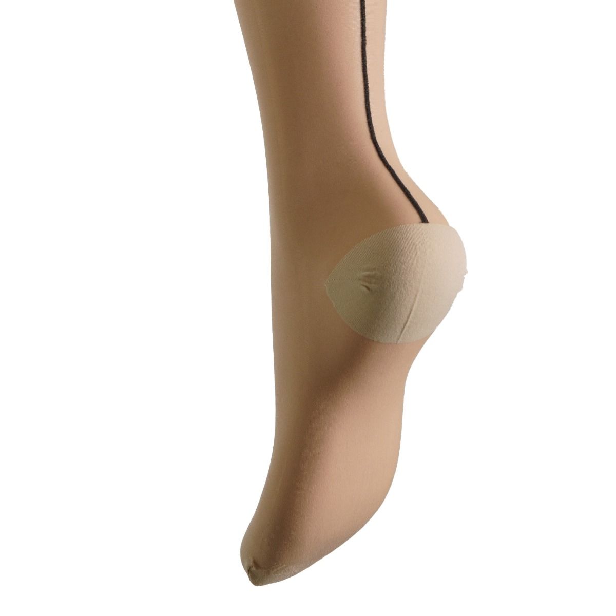 Autoreggenti con riga posteriore. Autoreggente setificata, 20 denari, con elegante riga dietro aspirata fissata, Ha punta e tallone rinforzati, balza in tono con il colore della riga. Rifinite con punte e cuciture confort. Colore Cosmetic /Nero La taglia S/M corrisponde alla 1/2 e la L/XL alla 3/4 Composizione: 85% poliammide 15% elastan Denari: 20 Made in Italy