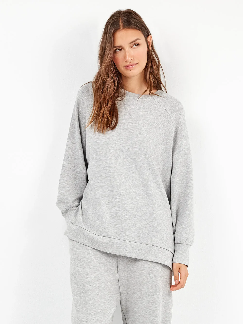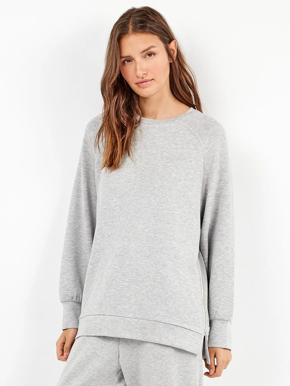 TUTA DONNA GISELA GRIGIO CHIARO CON MAGLIA A GIROCOLLO E ZIP LATERALI E PANTALONE DRITTO CON POLSINO