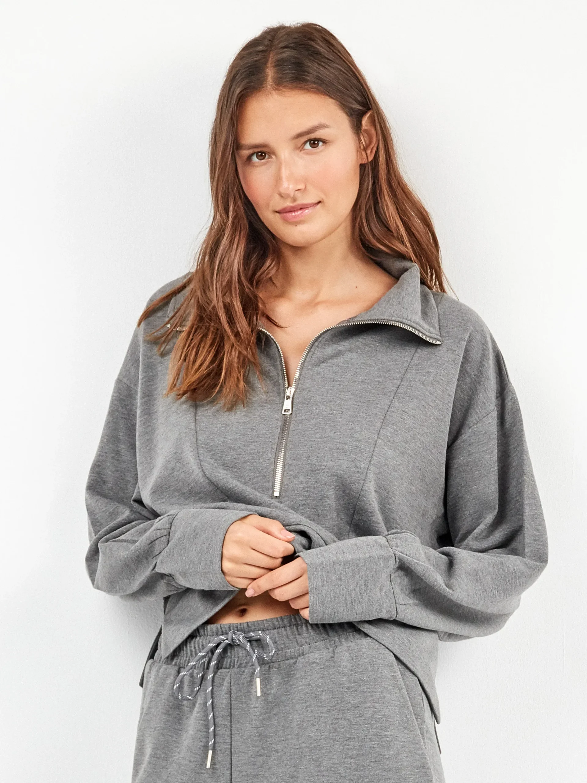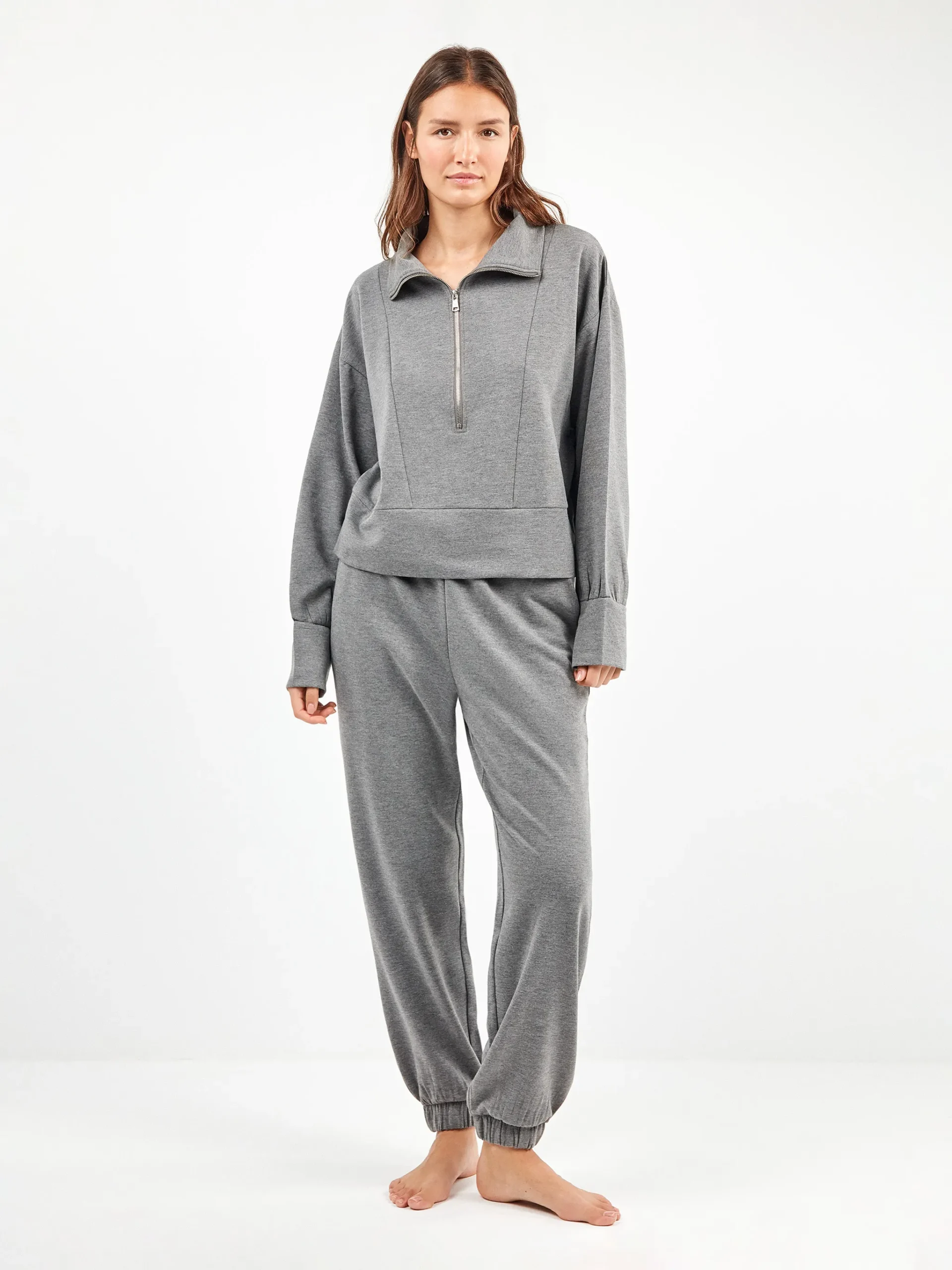 TUTA DONNA GISELA GRIGIO SCURO FELPATA MAGLIA CON ZIP E PANTALONE DRITTO CON ELASTICO